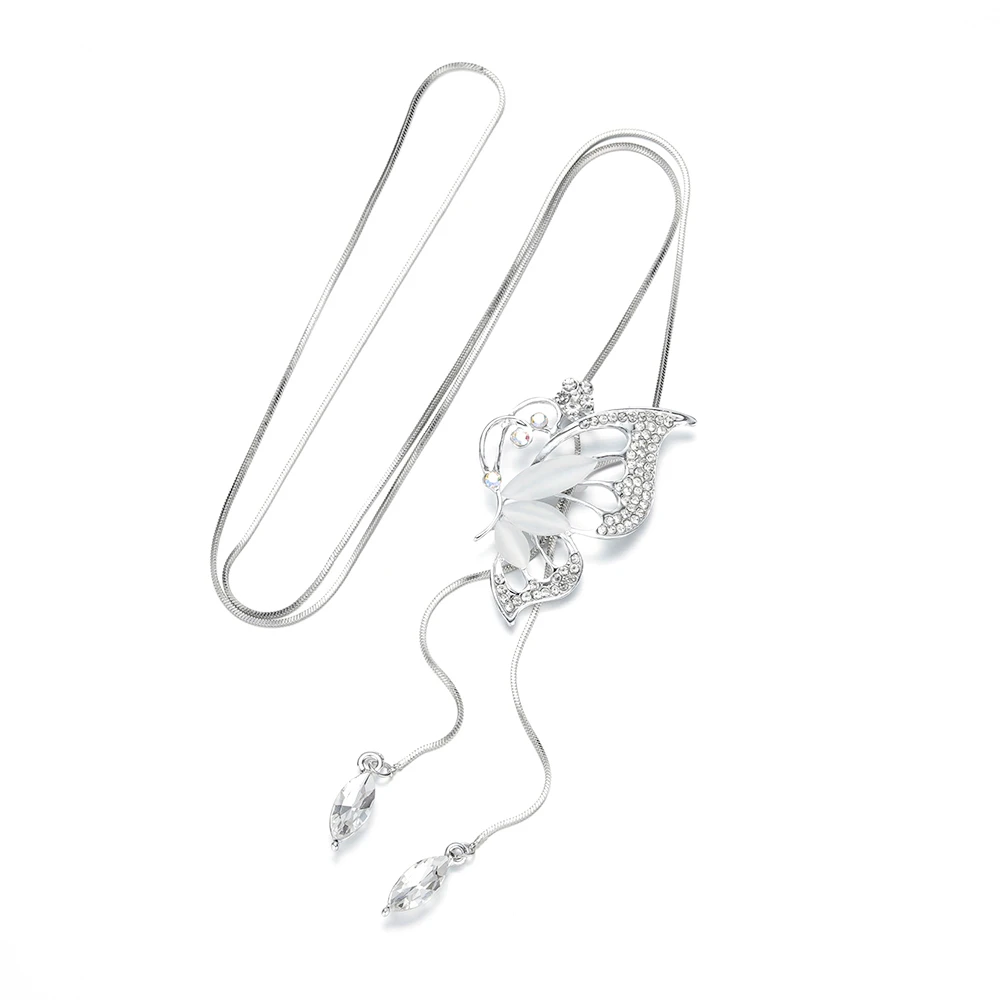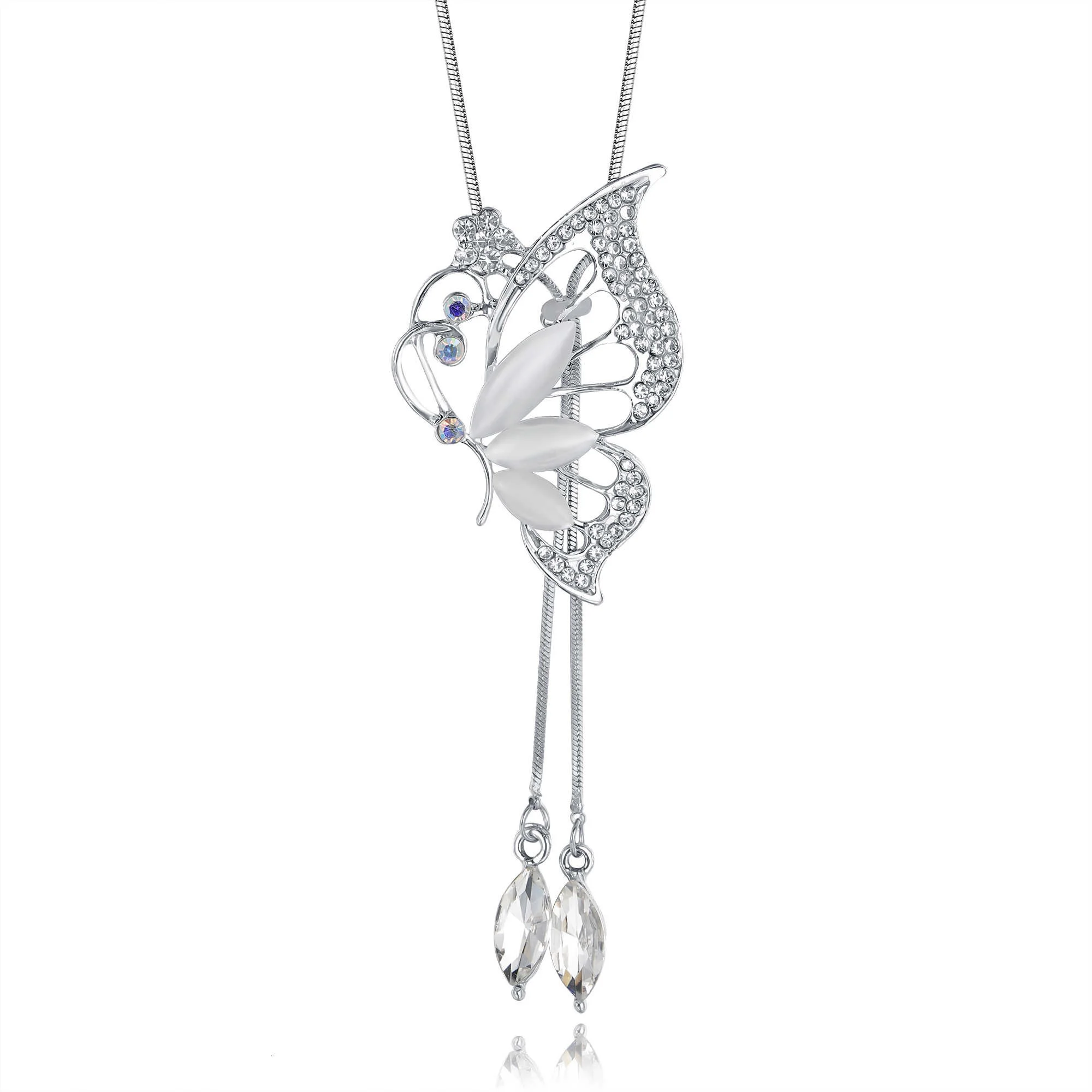Модные ожерелья и подвески с опаловой бабочкой для женщин, модное длинное ожерелье, женское винтажное ожерелье, женская серебряная цепочка, ювелирные изделия