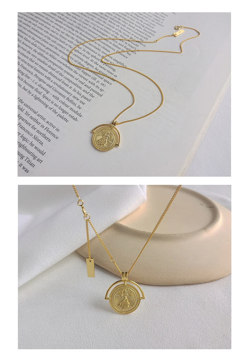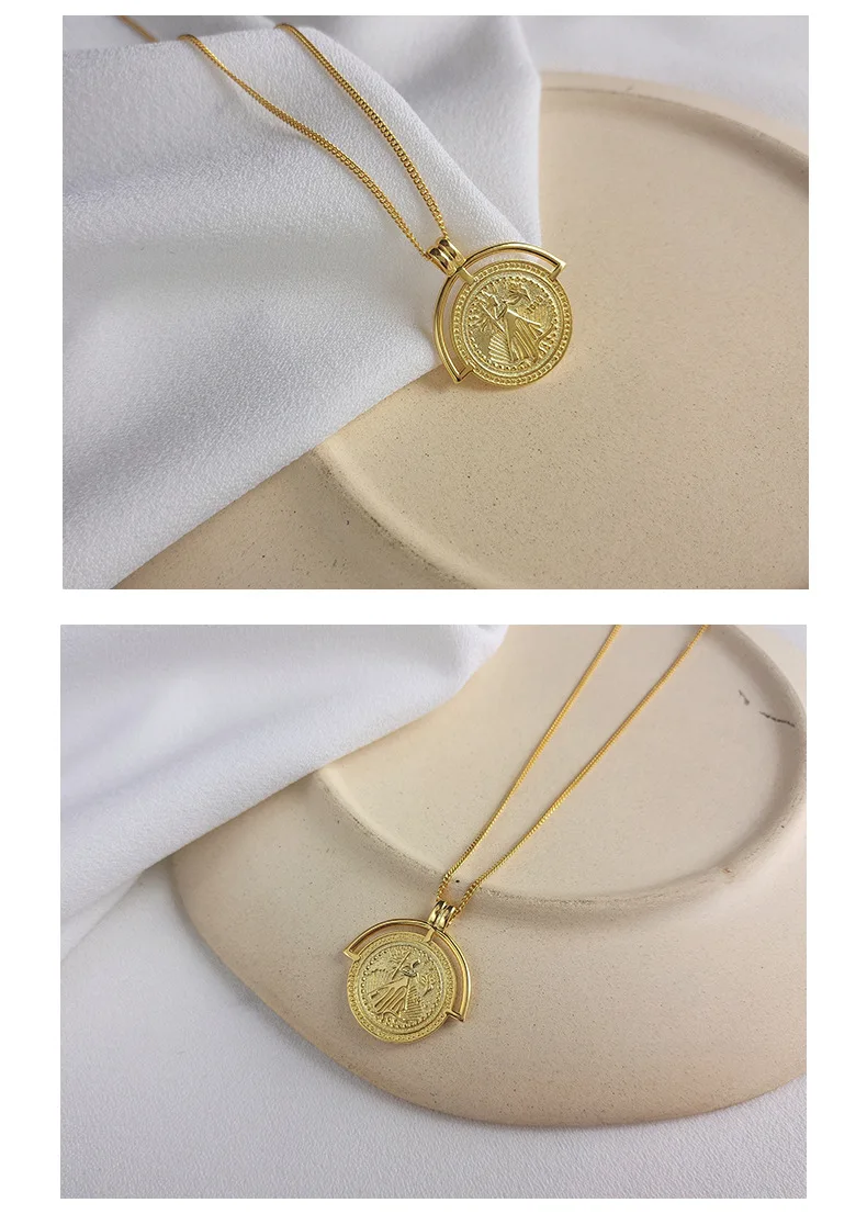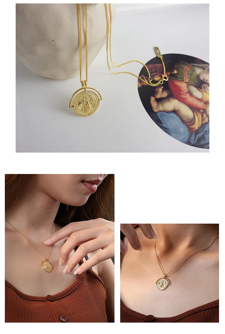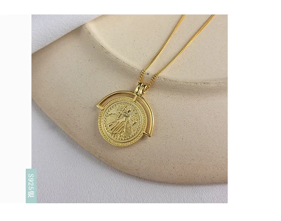 S925 серебро Монета с портретом кулоном женское колье короткие ключ...