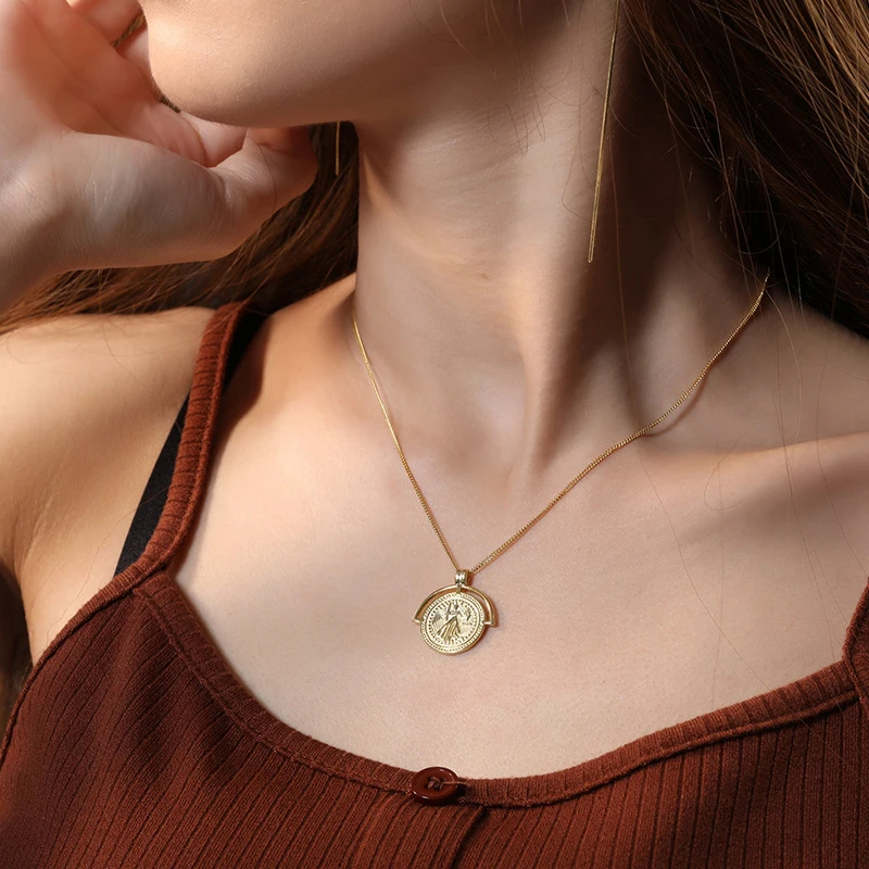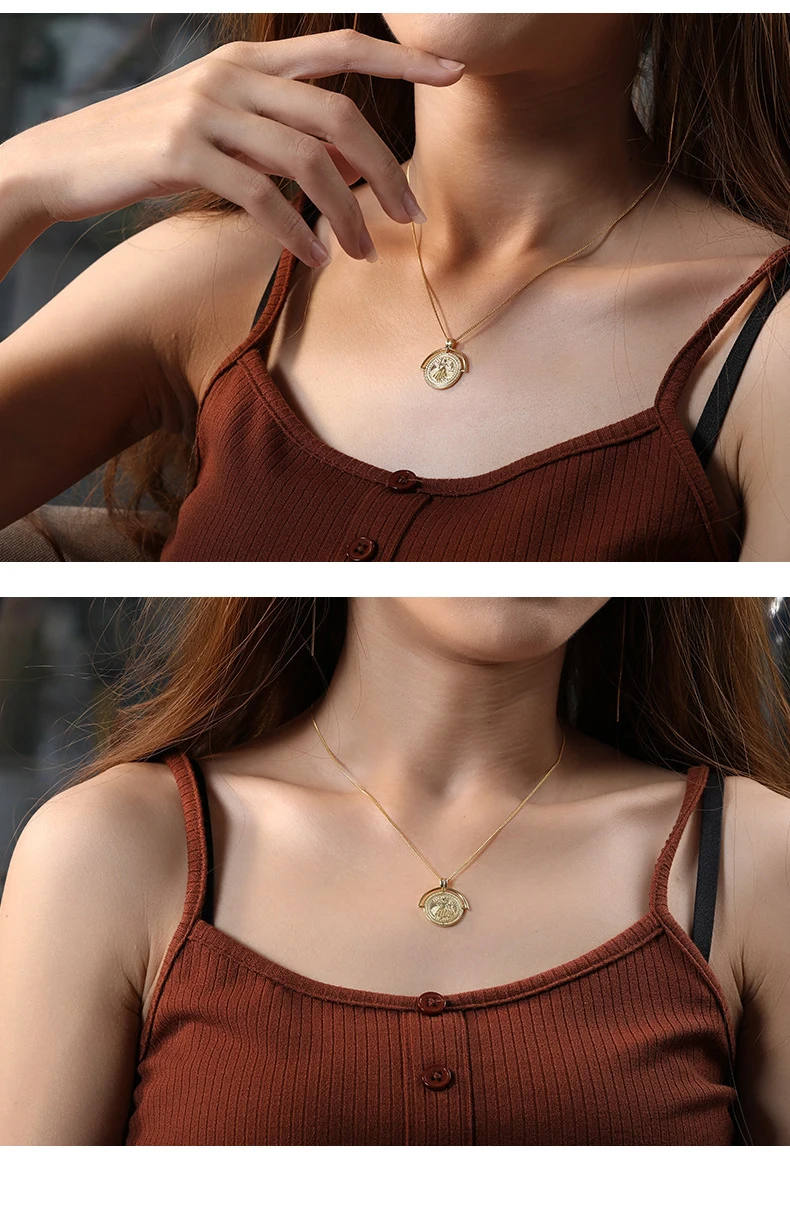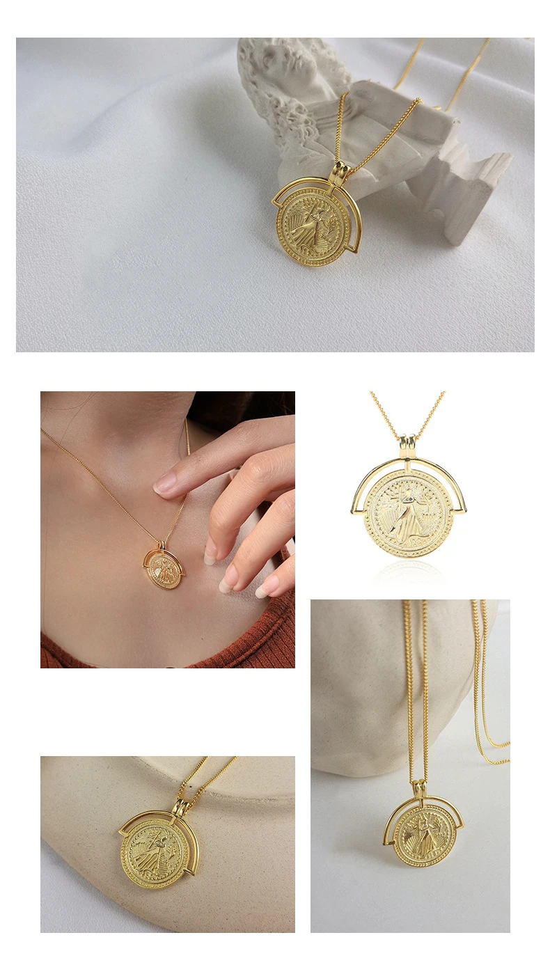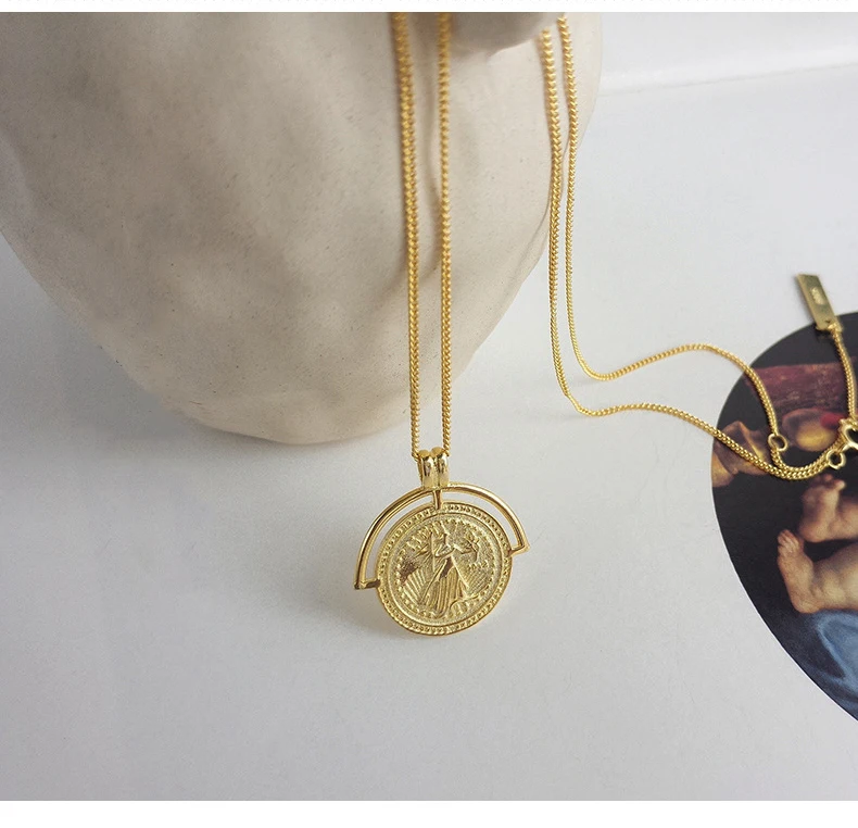 S925 серебро Монета с портретом кулоном женское колье короткие ключ...