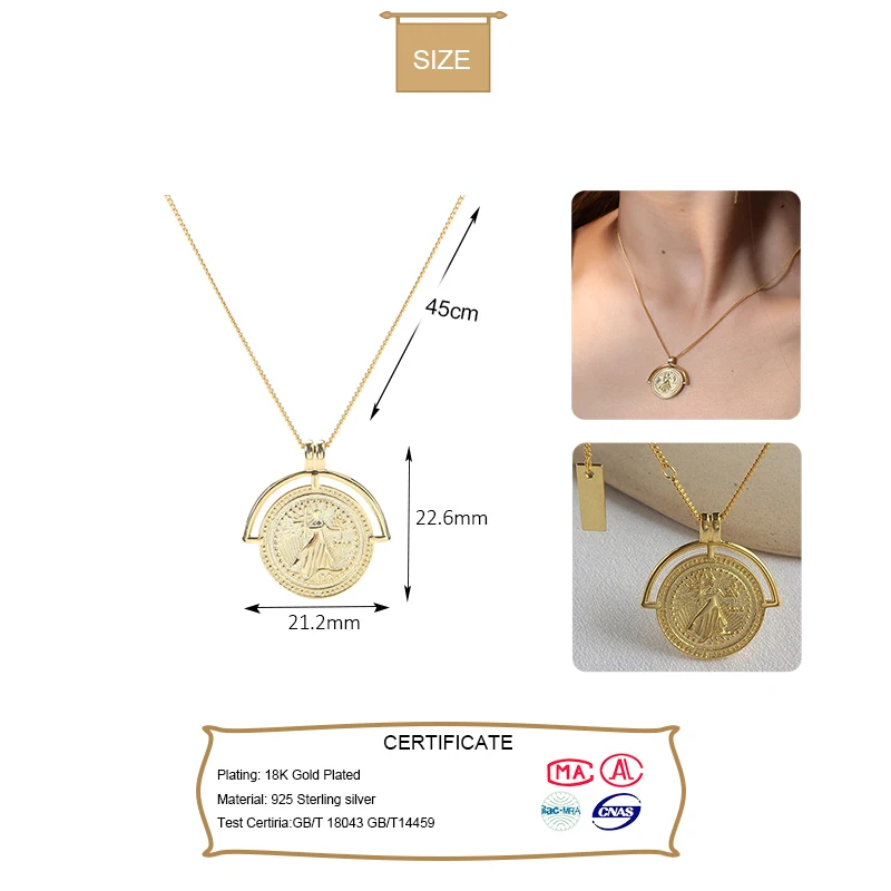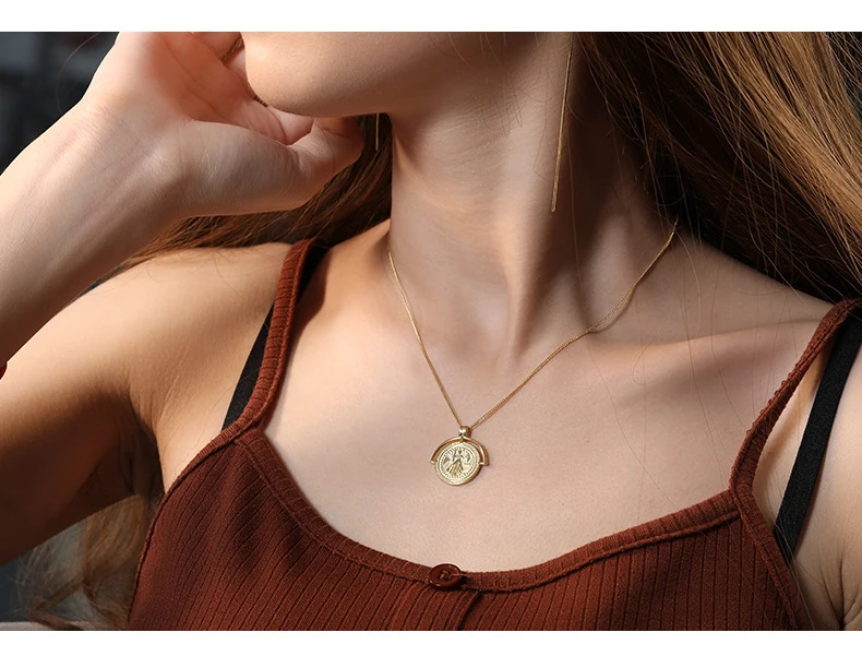 Женское ожерелье из серебра 925 пробы, с подвеской в виде монеты