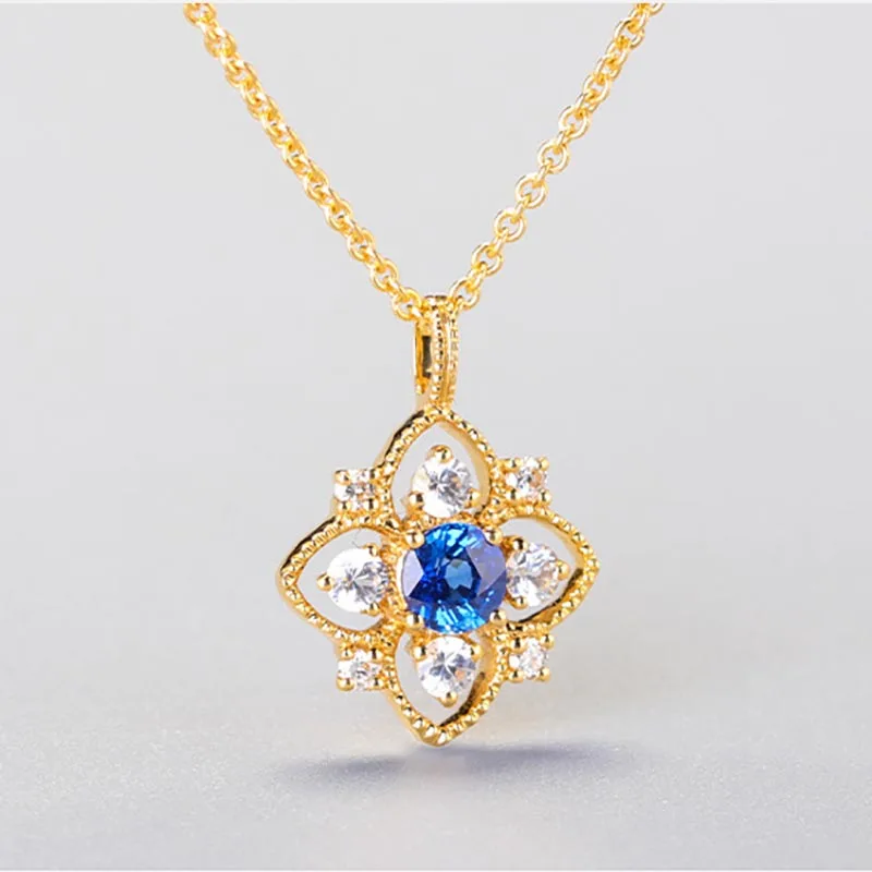 Женское колье из серебра 925 пробы, с круглым сапфиром