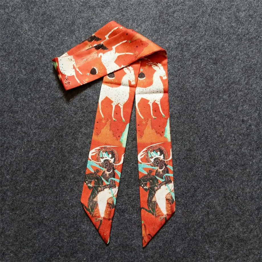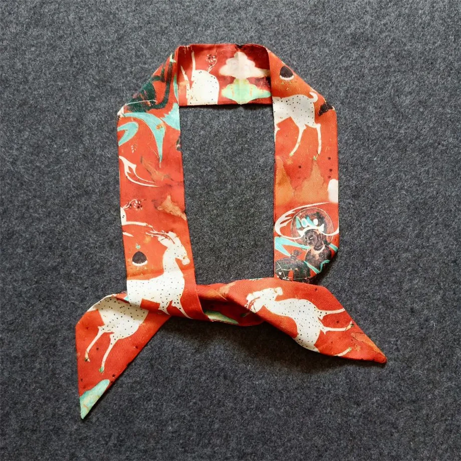 Новый дизайн Dunhuang Nine-color Шелковый шарф с оленем 2021 роскошный брендовый шарф Женская облегающая сумка шарф на шею для волос Женская повязка на голову