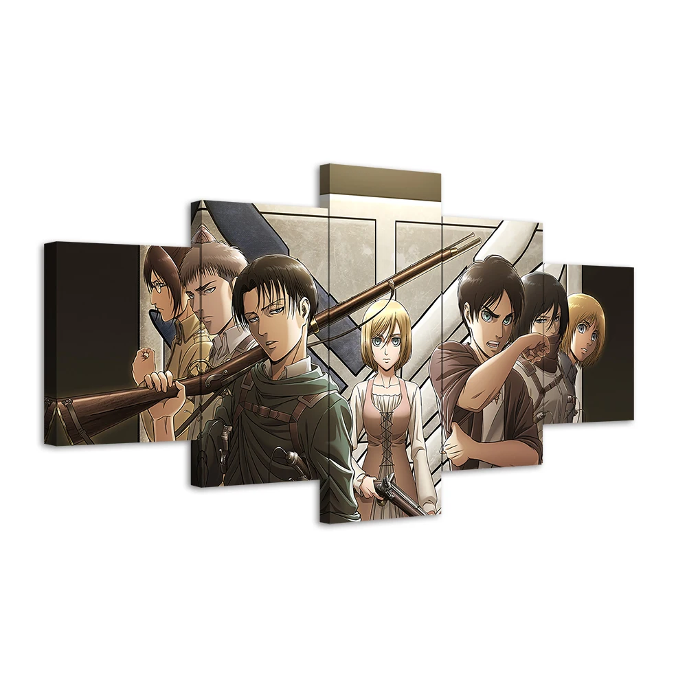 Картина на холсте, настенные художественные плакаты, 5 панелей, атака на титанов, аниме Модульная картина, украшение для дома, рамка, Современная гостиная
