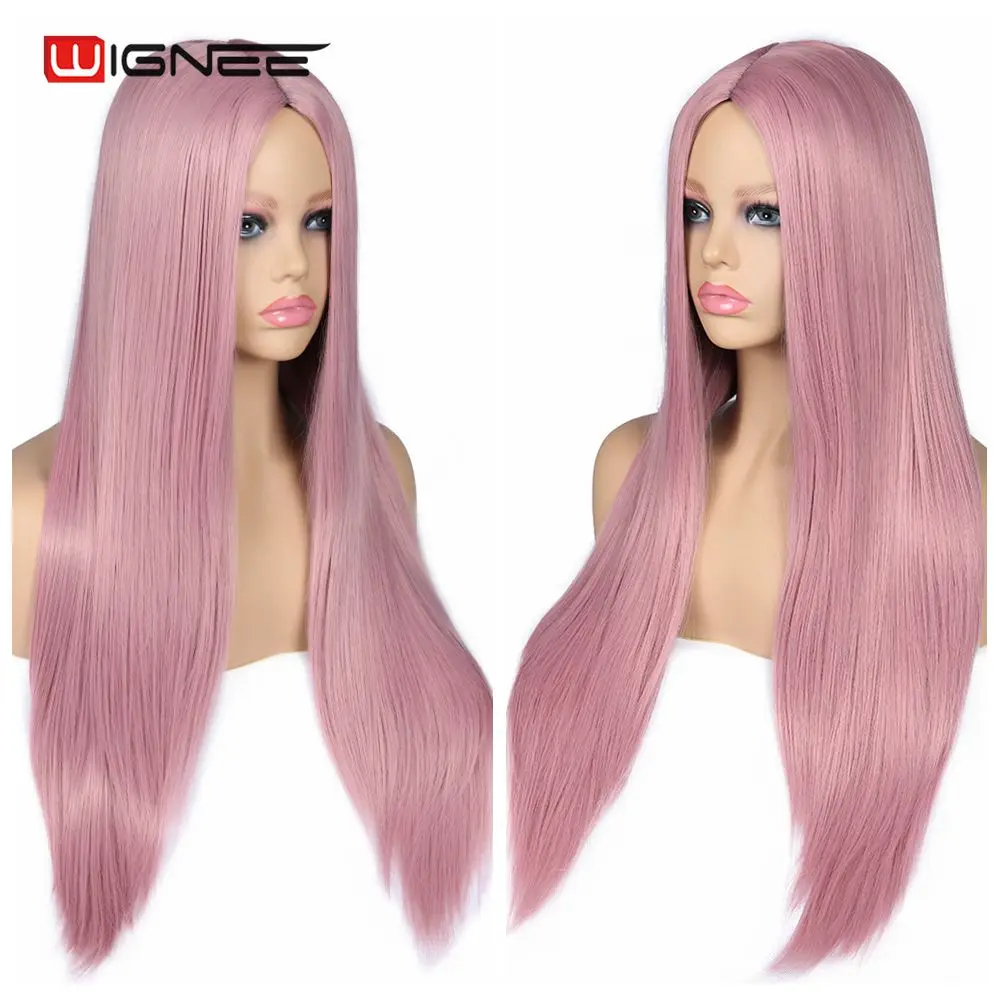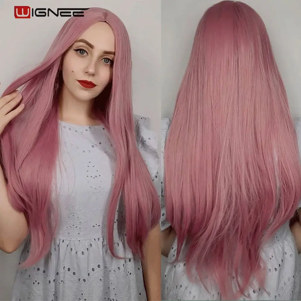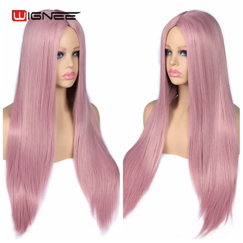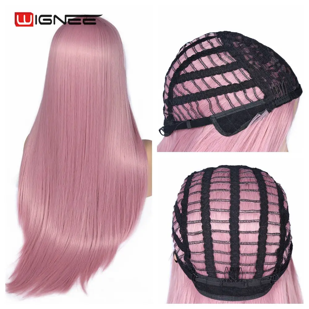 Wignee розовый длинный прямой синтетический парик для женщин косплей парик Розовый Средний ежедневновечерние термостойкие бесклеевые волосы парики