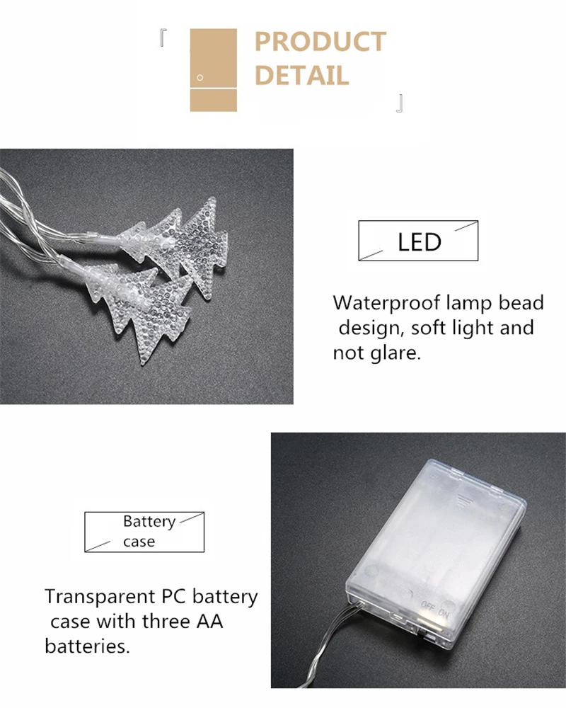 Стиль: Рождественская елка Цвет света: цвет/белый/теплый желтый Размер: 3 м/6 м/10 м Подходит для: украшения гостиной, спальни, кухни, ресторанов и т. Д. Режим: USB/батарея (батарея не входит в комплект)