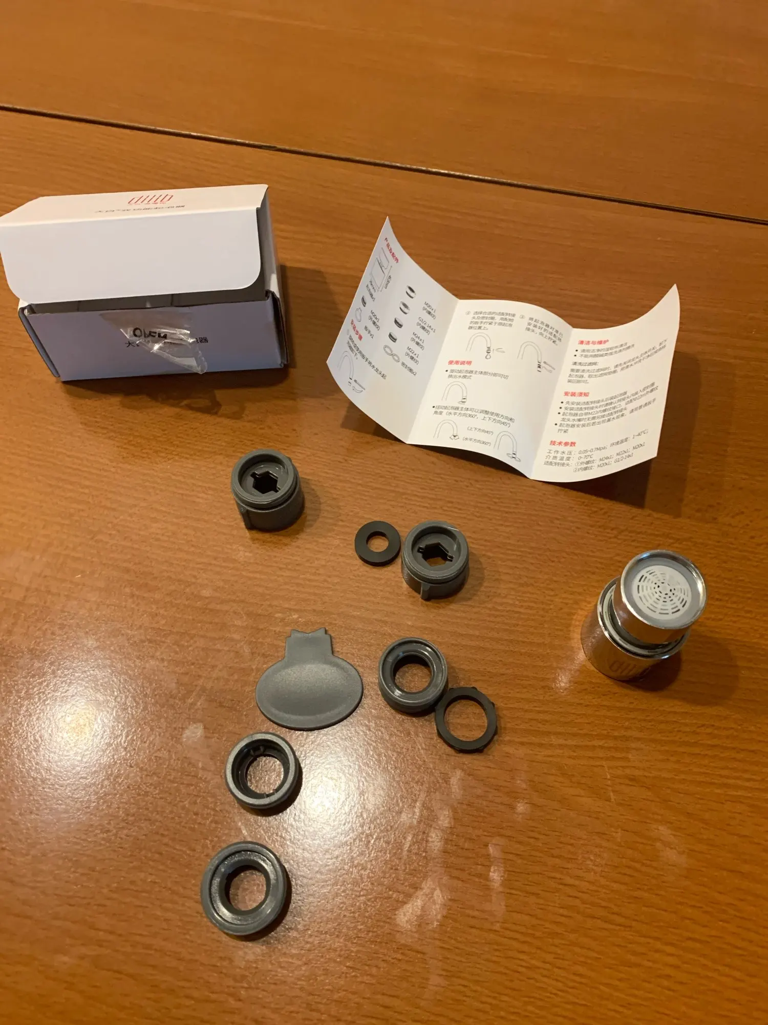 Гарний аератор. Заказав спочатку один, випробував все супер. Тепер заказав ще 2, на інший кран і запасний. В комплекті купа різних перехідників-адапторів під різну різьбу. Якість хороша