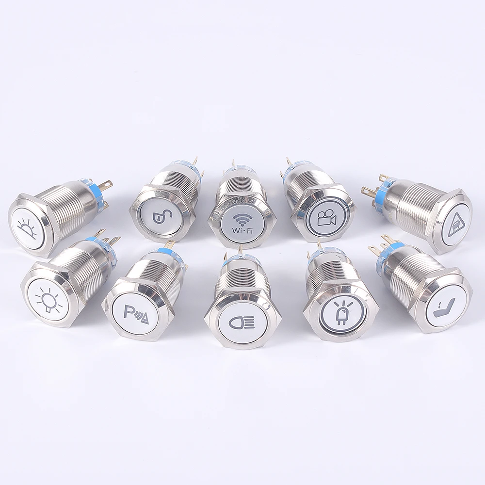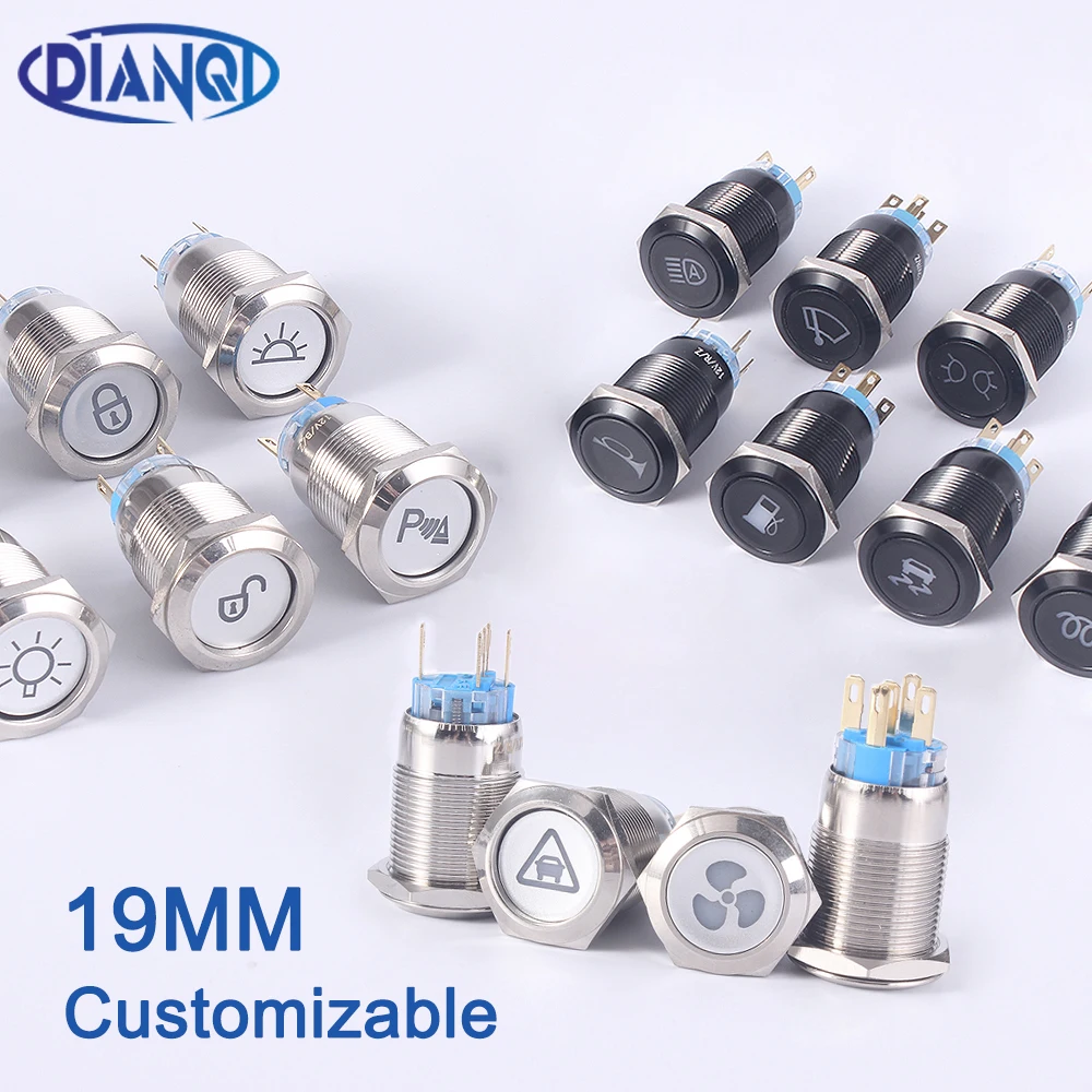 Кнопка для настройки 19 мм, металлическая латунная родиевая кнопка переключателя, кольцевая лампа, Плоская Круглая противотуманная фара с фиксациеймгновенным режимом
