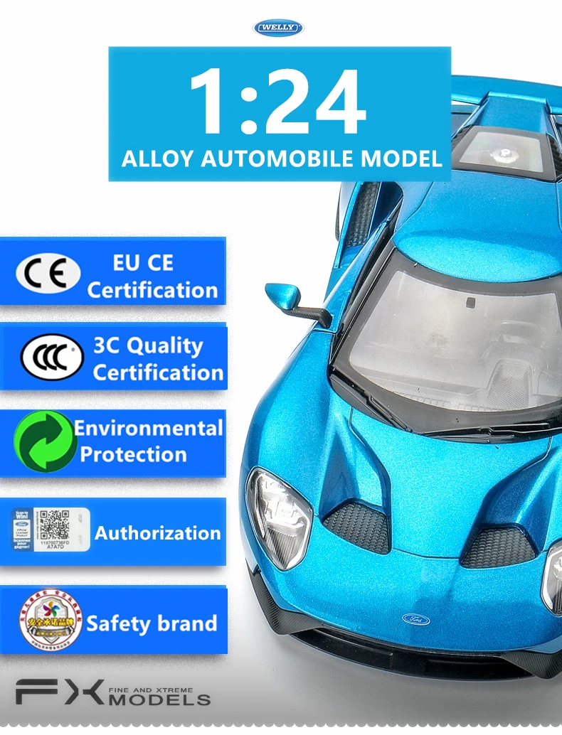 Модель автомобиля welly 1:24 Ford GT, модель автомобиля из сплава, имитация автомобиля, украшение, коллекционная игрушка в подарок, литье под давлением, модель игрушка для мальчиков