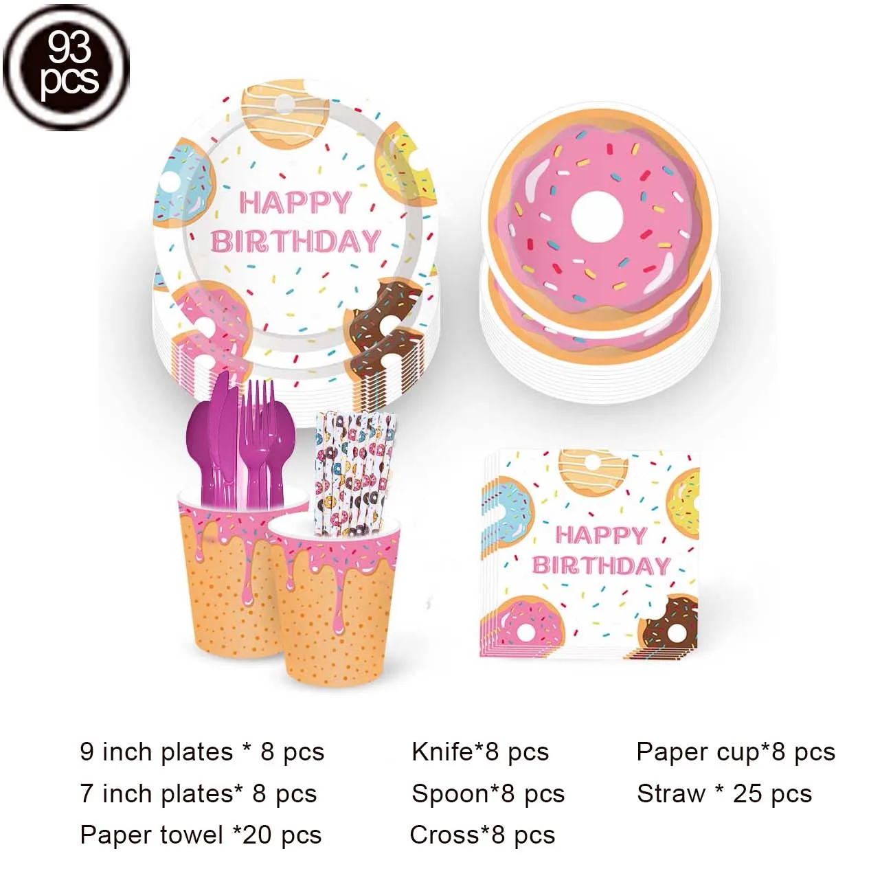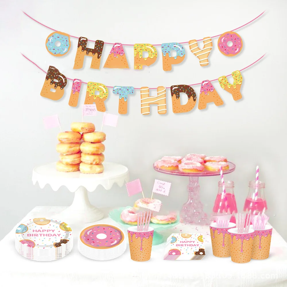 Пончик бумажный стаканчик салфетки тарелки с днем рождения Юбилей ребенок душ конфеты украшение для бара и вечеринки пончик партии