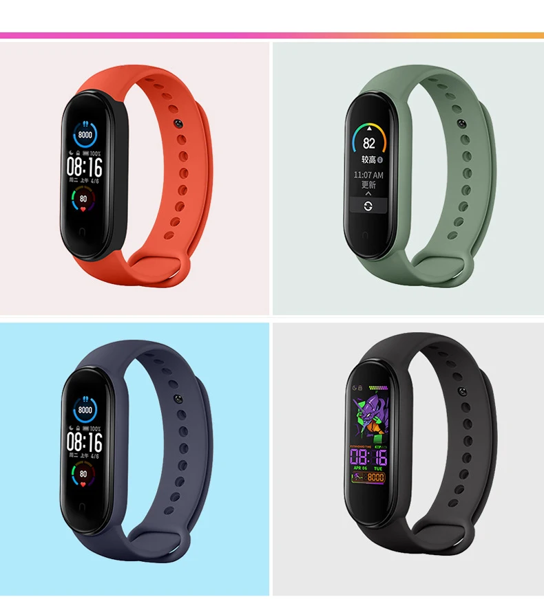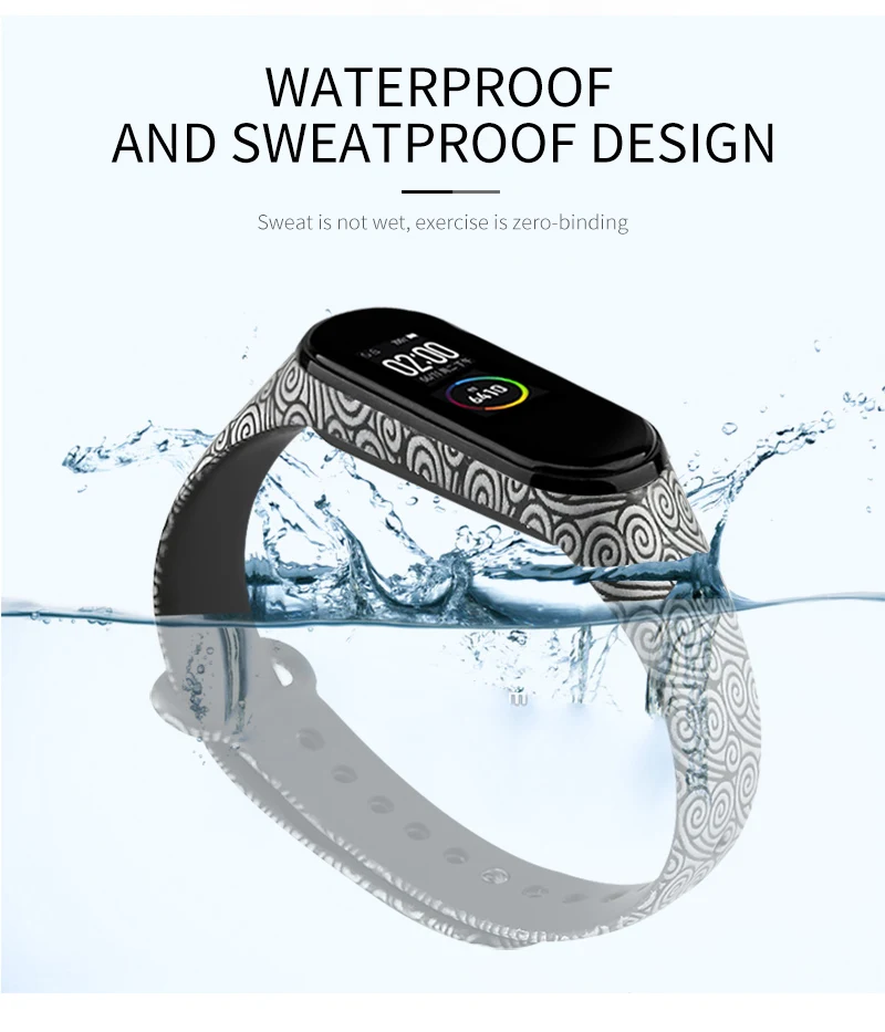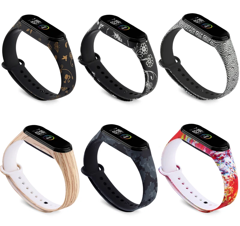 Ремешок силиконовый для Amazfit Band 5 Xiaomi Mi band 5 4 3, сменный Браслет с nfc принтом для Mi Band 5