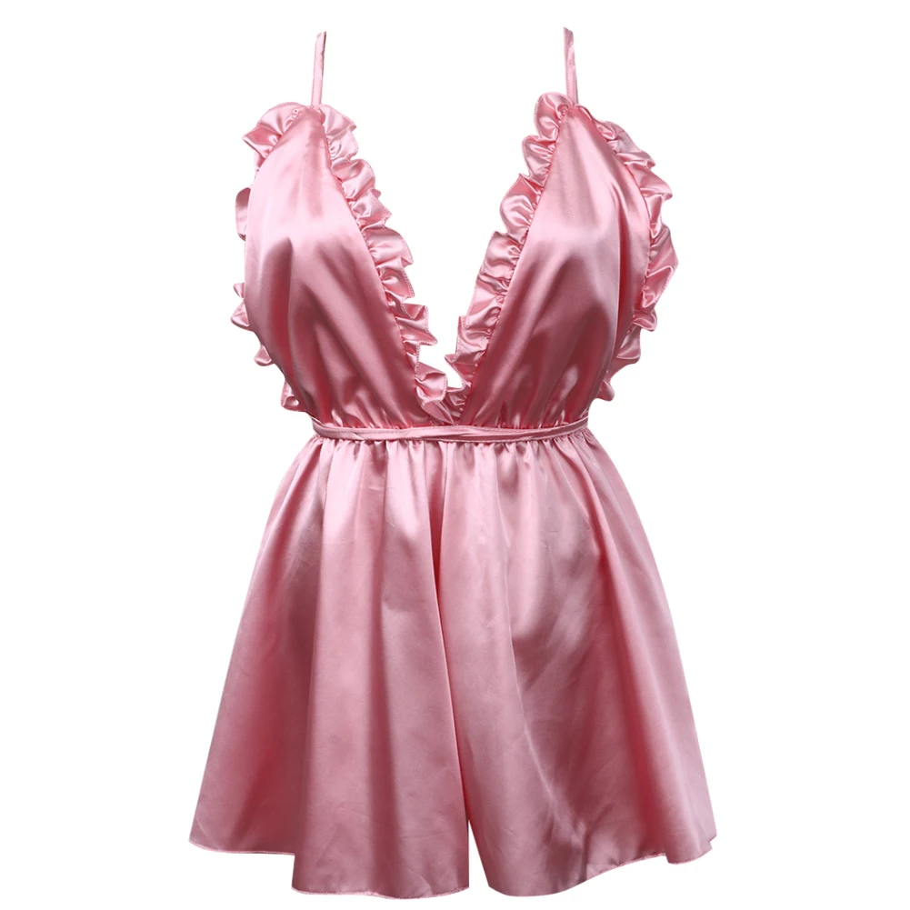 Женская пикантная Пижама с V-образным вырезом, однотонный комбинезон без рукавов, зеленые, розовые, цвета шампанского