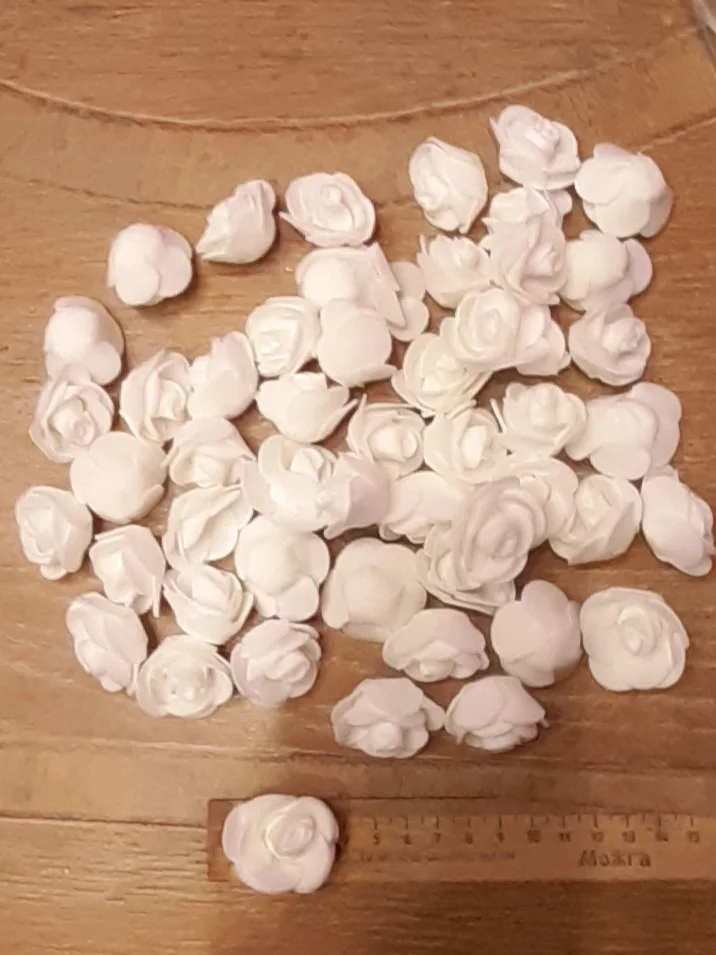 красивые фоаминовые розочки, мягкие, соответствуют фото, довольно крупные! Приехали всего за 2-3 недели.