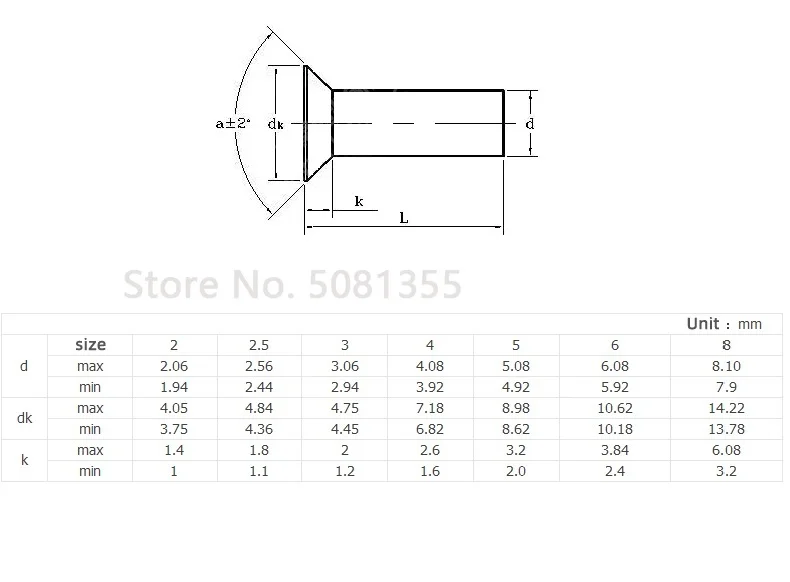 Заклепки с потайной головкой M2 M2.5 M3 M4 GB869, 50 шт., 100 шт.