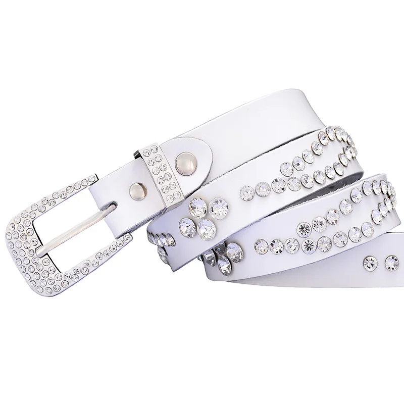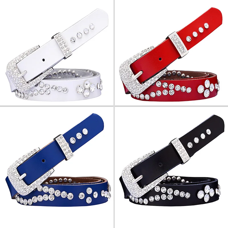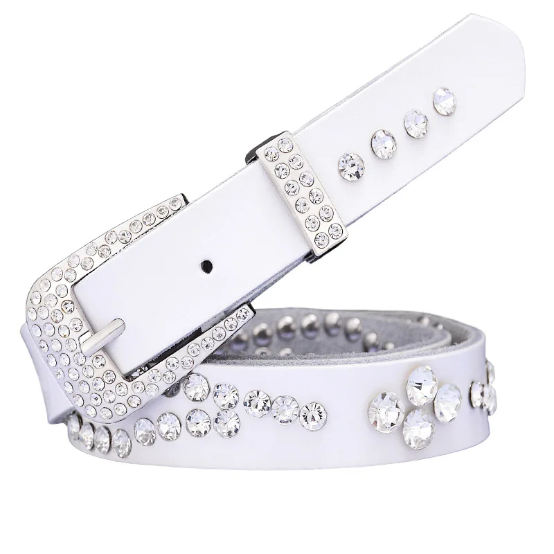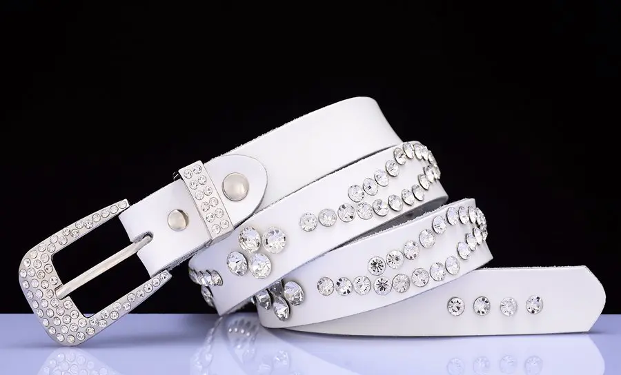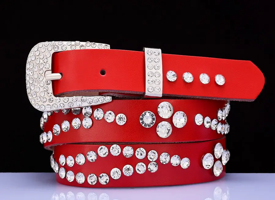 Belt StyleNarrow rhinestone women belts,Genuine leather belts for women