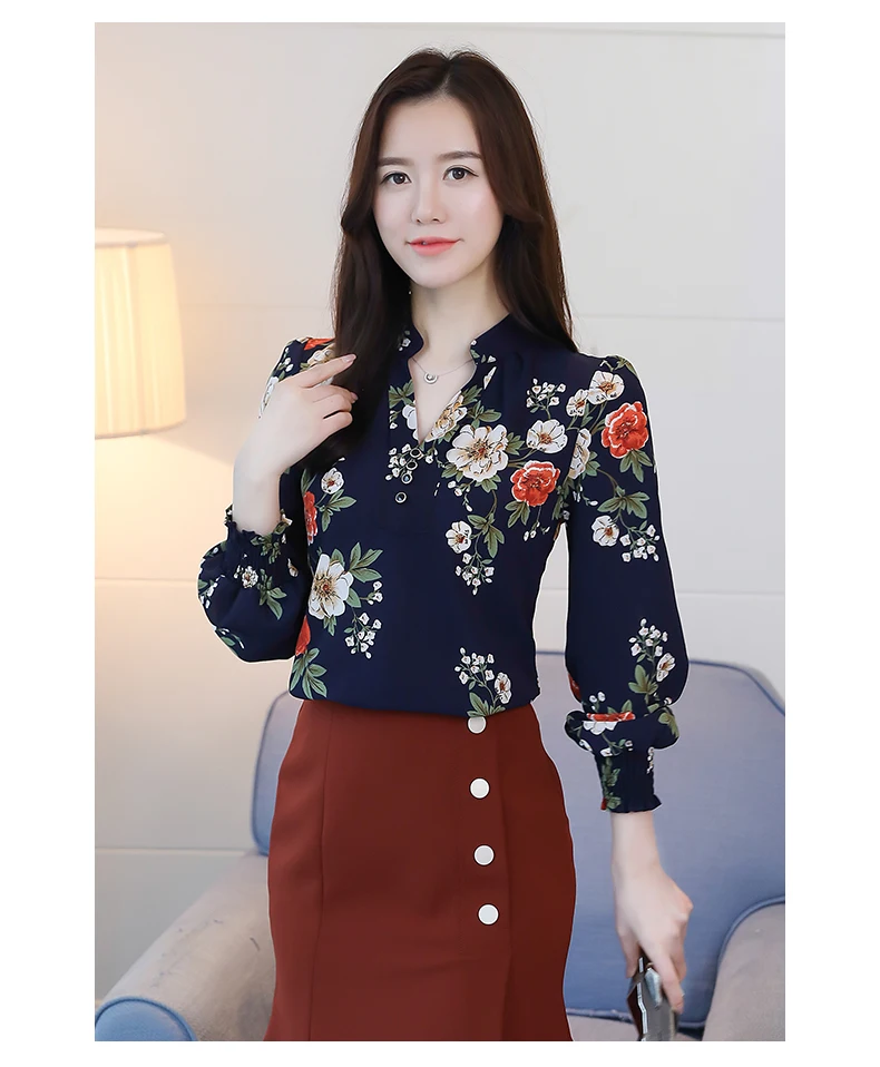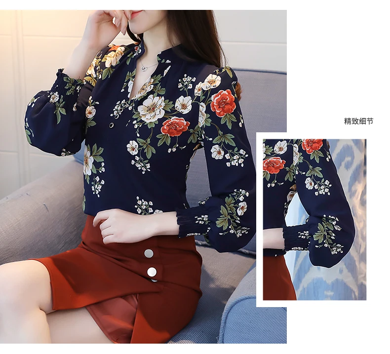 Женская блузка с цветочным принтом, осенняя, 6140, 50