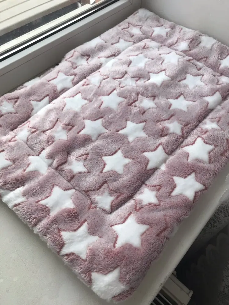 Получила тонкую тряпочку с одним слоем синтепона. На фото в рекламе пухленькая подстилка для собаки. В реалии одеяло толще этого коврика. Я не довольна товаром, хотя пришёл быстро.