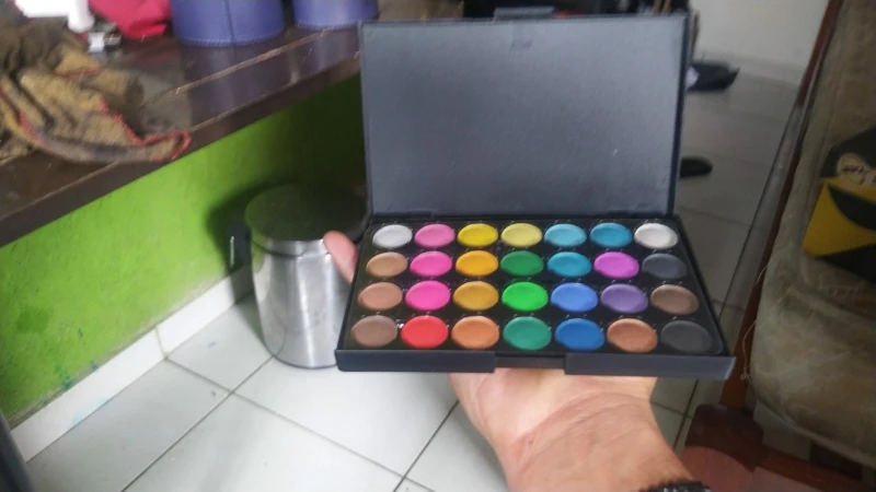 Veio muito bem embalada, nenhum cor quebrada, as cores são bem bonitas e o pincel veio certinho também.