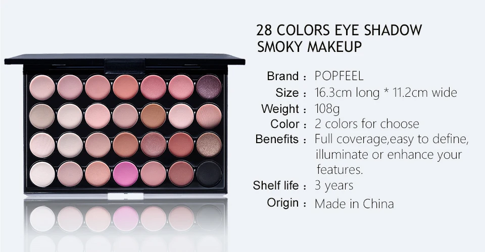 Палетка мерцающих теней POPFEEL для век, 28 цветов, шелковистая пудра, дымчатый и теплый макияж, матовые тени для век, косметический набор