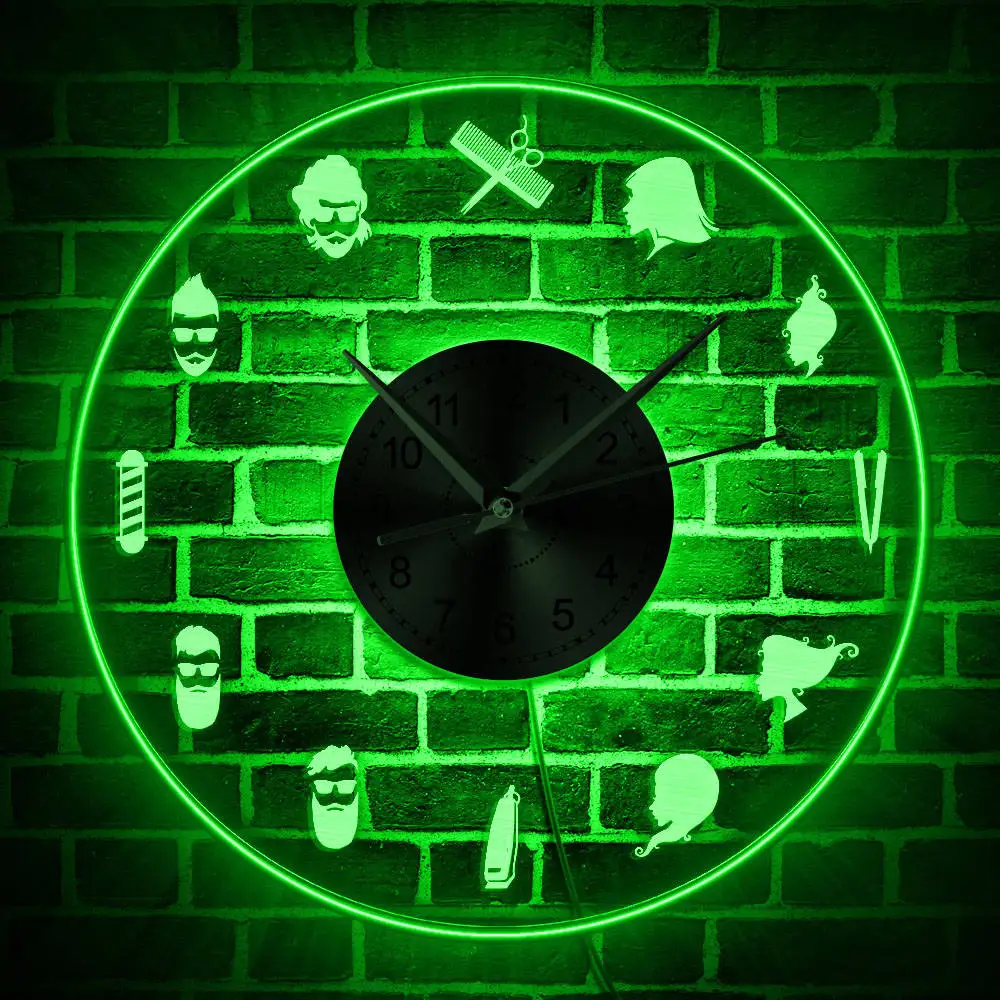 Светодиодный настенный светильник для парикмахерских, Светящиеся Настенные часы для салона красоты с подсветкой