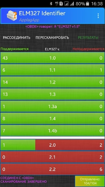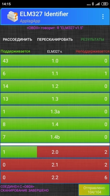Сканер соответствует описанию, заказывал версию 1.5 пришла именно она. В комплекте сканер + диск. Программу установил с плей маркета, в качестве тестовой. Все работает. Заказом доволен. В дальнейшем буду искать более информативную программу.