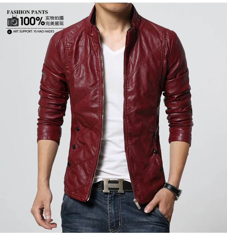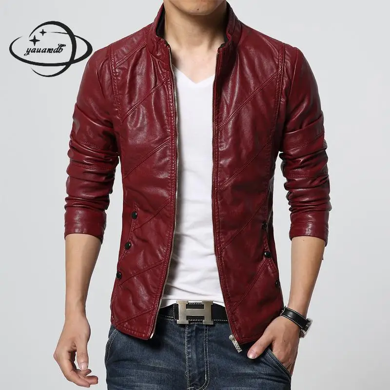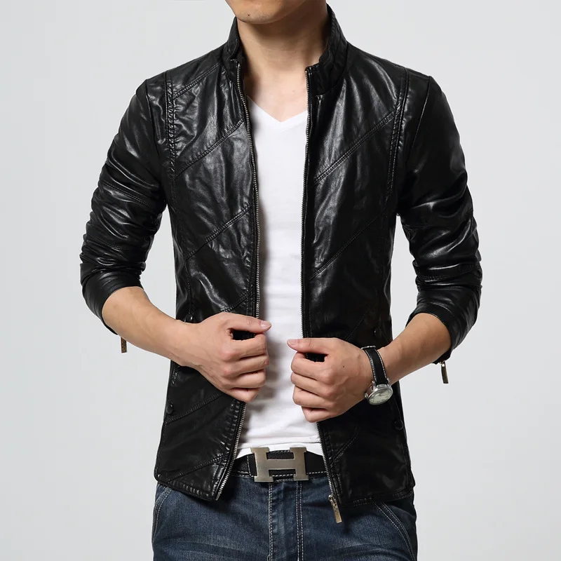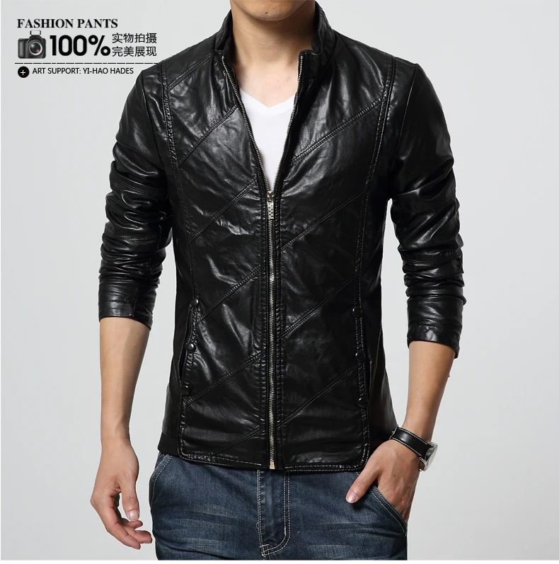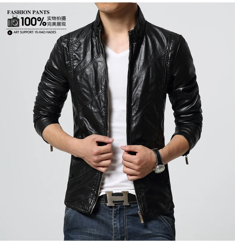 Мужская куртка из искусственной кожи, весенне-осеннее Мужское пальто, одежда со стоячим воротником на молнии из искусственной кожи размера плюс, тонкая мужская верхняя одежда H120