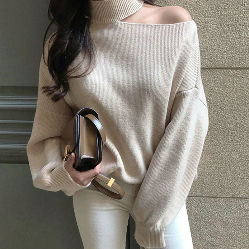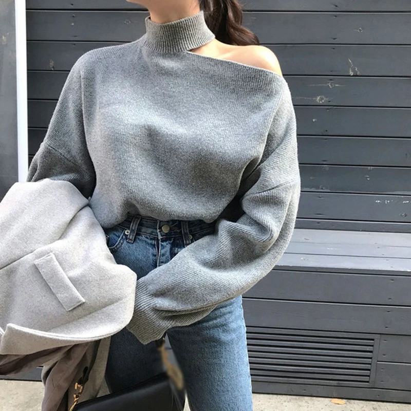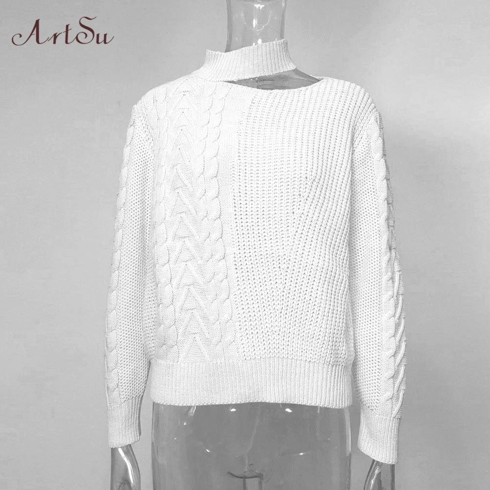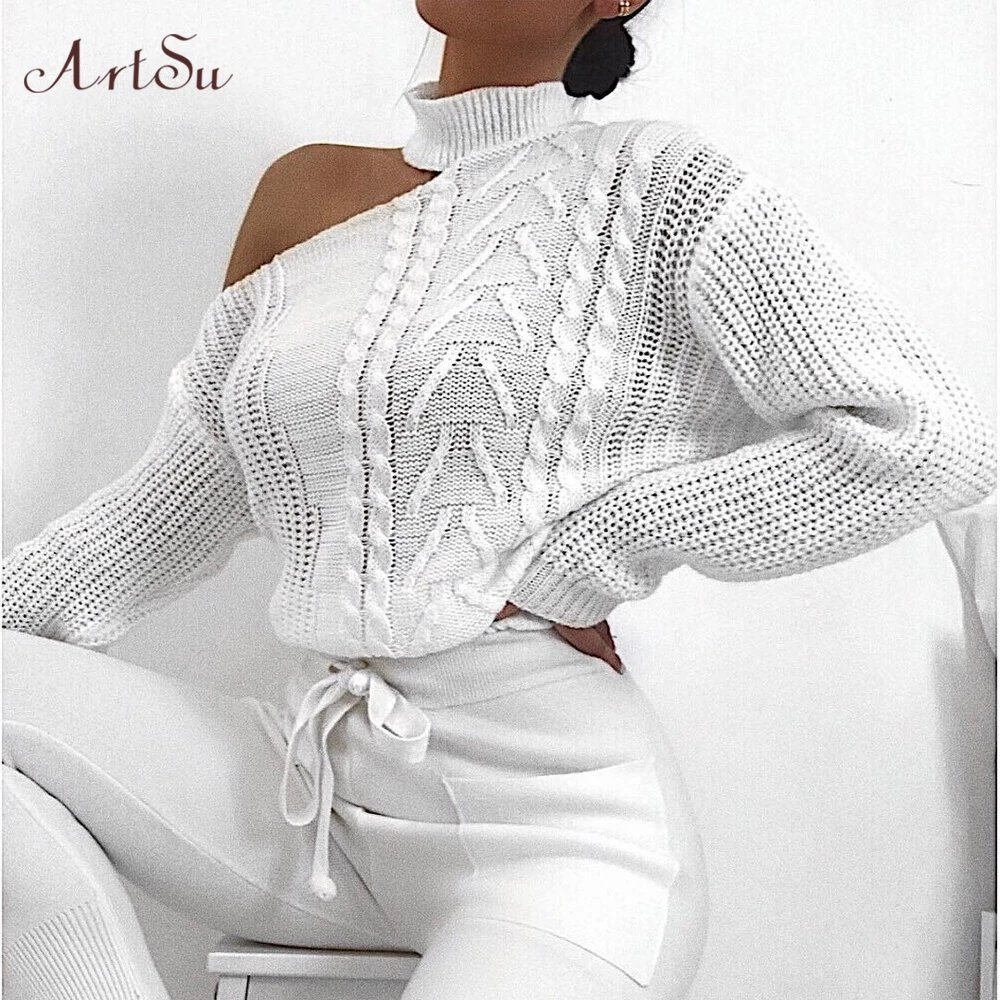 Женский свитер с открытыми плечами ArtSu, повседневный однотонный вязаный пуловер большого размера на зиму, 2019