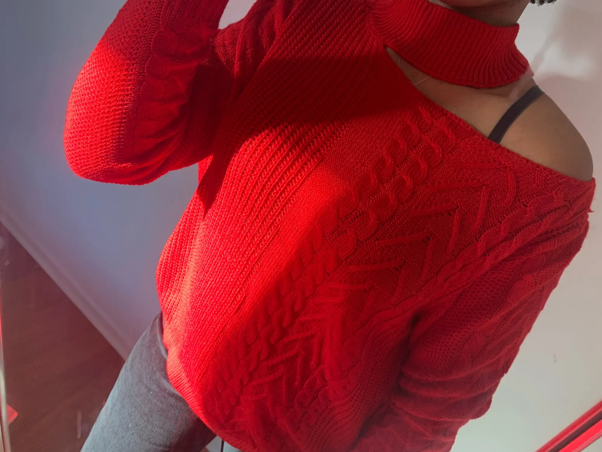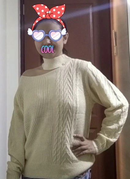 Отверстие на плече не такое открытое, как на фотографиях, слишком плохое, потому что в противном случае свитер красивый