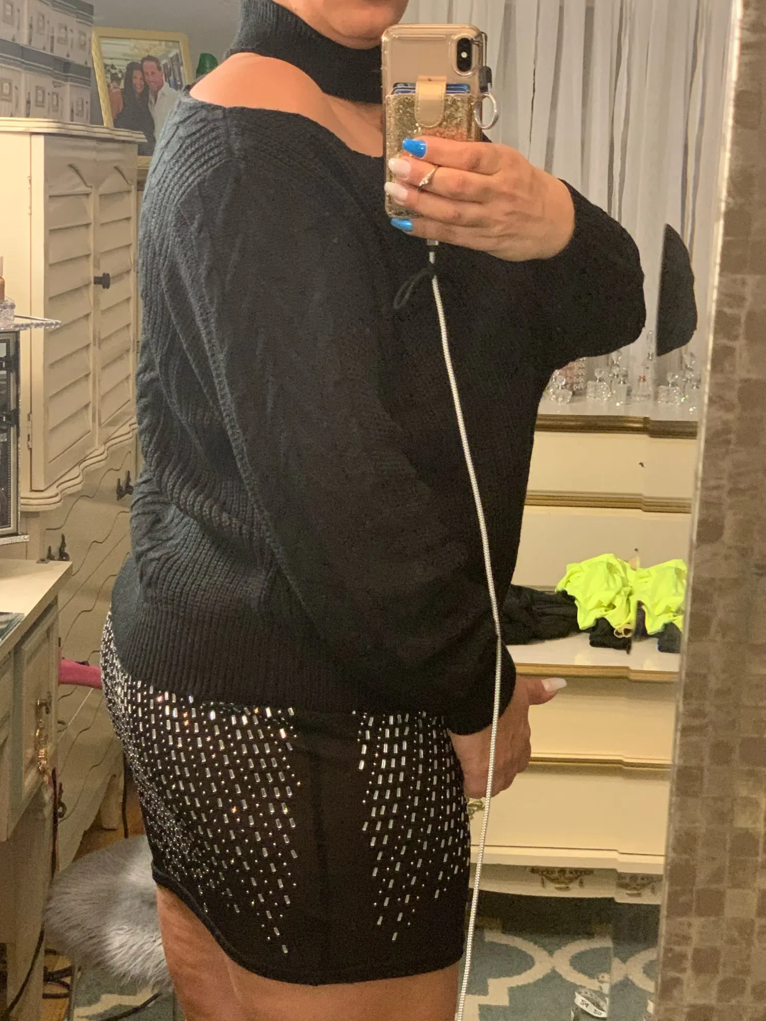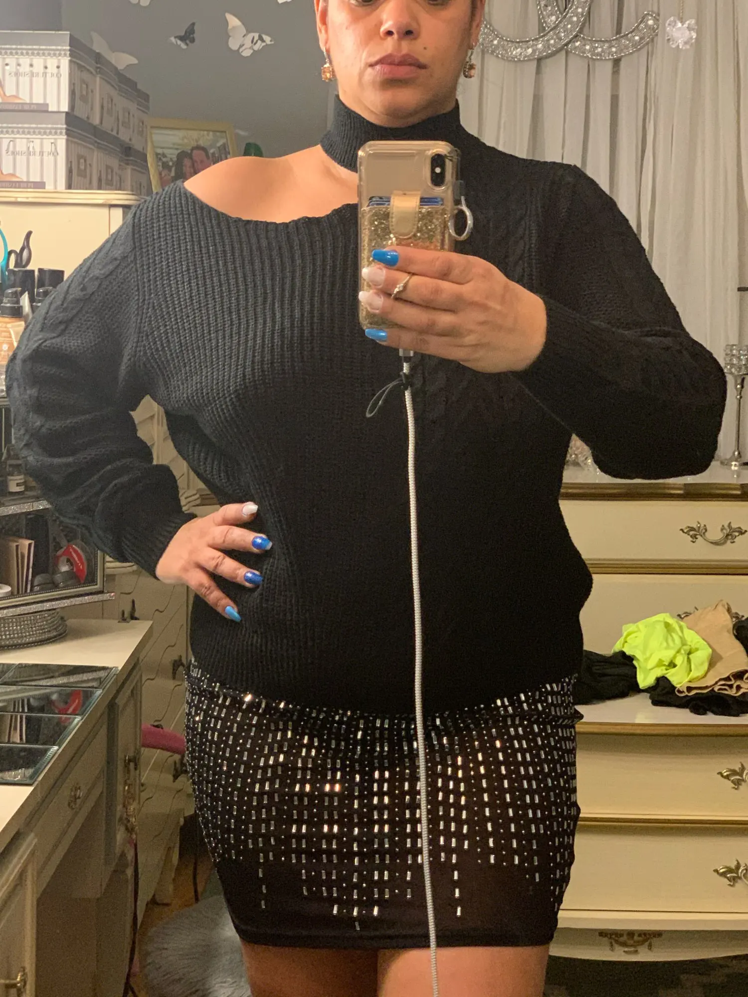 Красиво! Выберите размер выше, чтобы свитер хорошо падал на плече