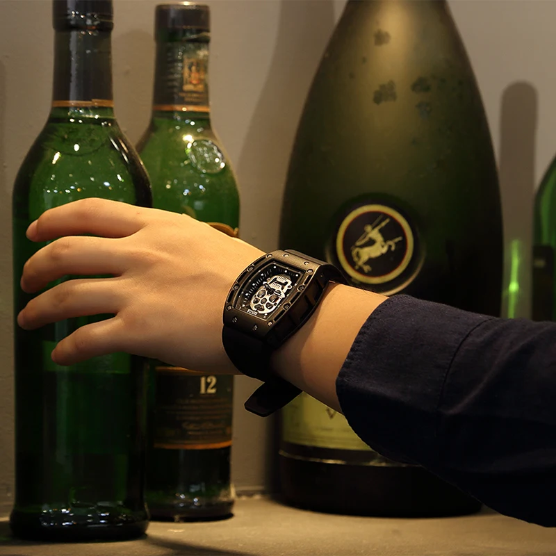Лицо прямоугольной формы, Череп, браслет из силикона, черный, светлые мужчины с модными кварцевыми часами