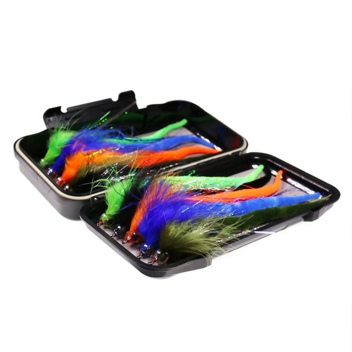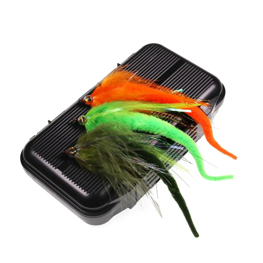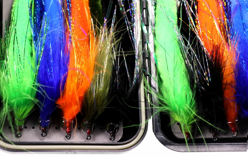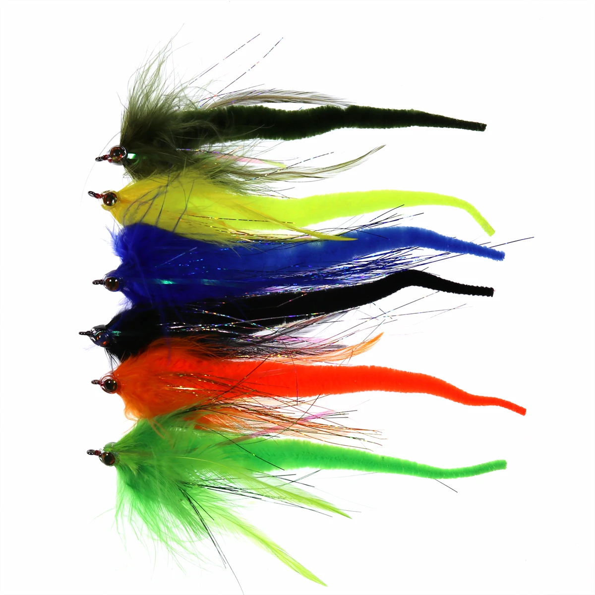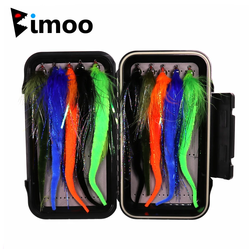 Bimoo 1 коробка = 10 шт. хвосты дракона, щука, стримеры, окунь, щука, Мускусная рыболовная приманка для ловли нахлыстом, соленая вода, большая рыболовная стрекоза