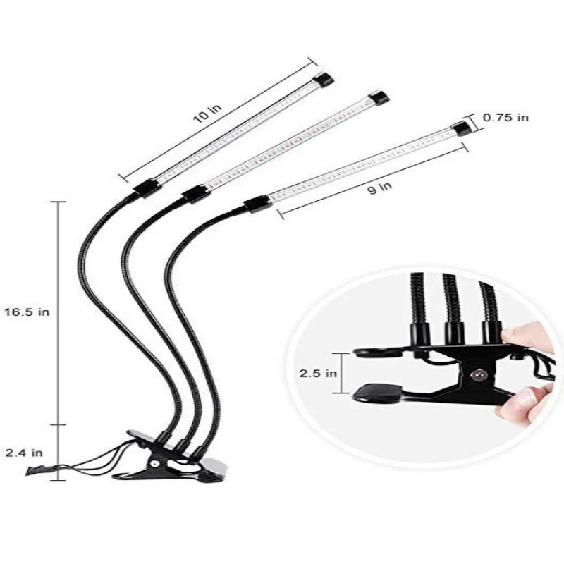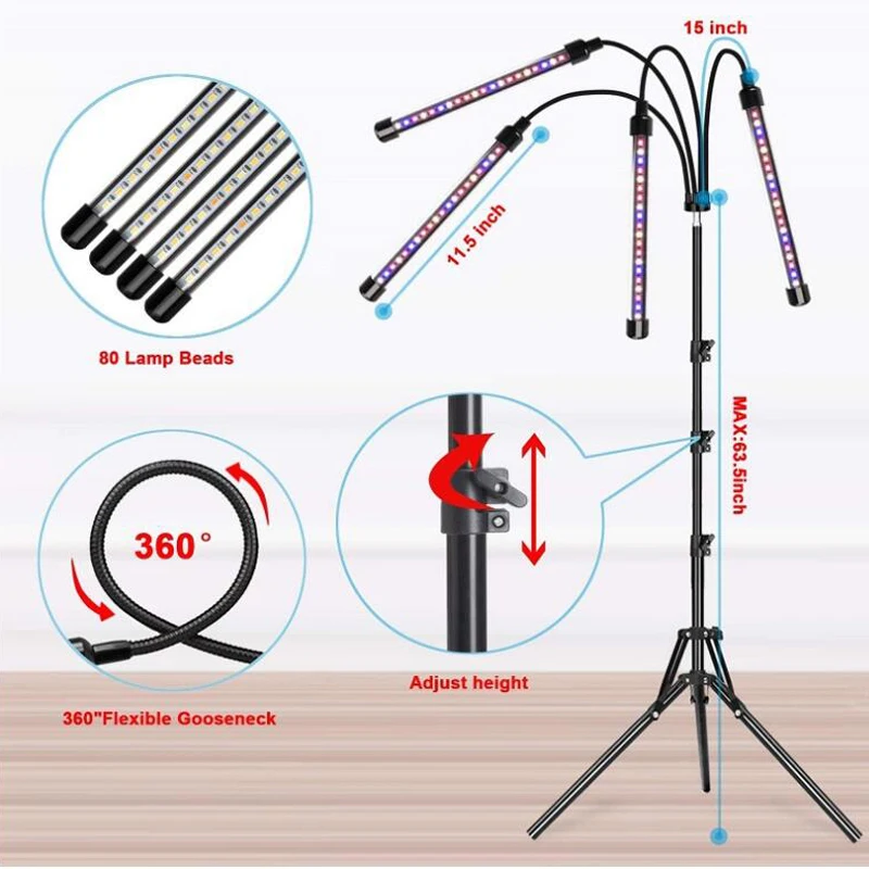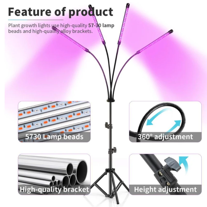 Четыре головки USB лампа для выращивания с кронштейном с пультом дистанционного управления: