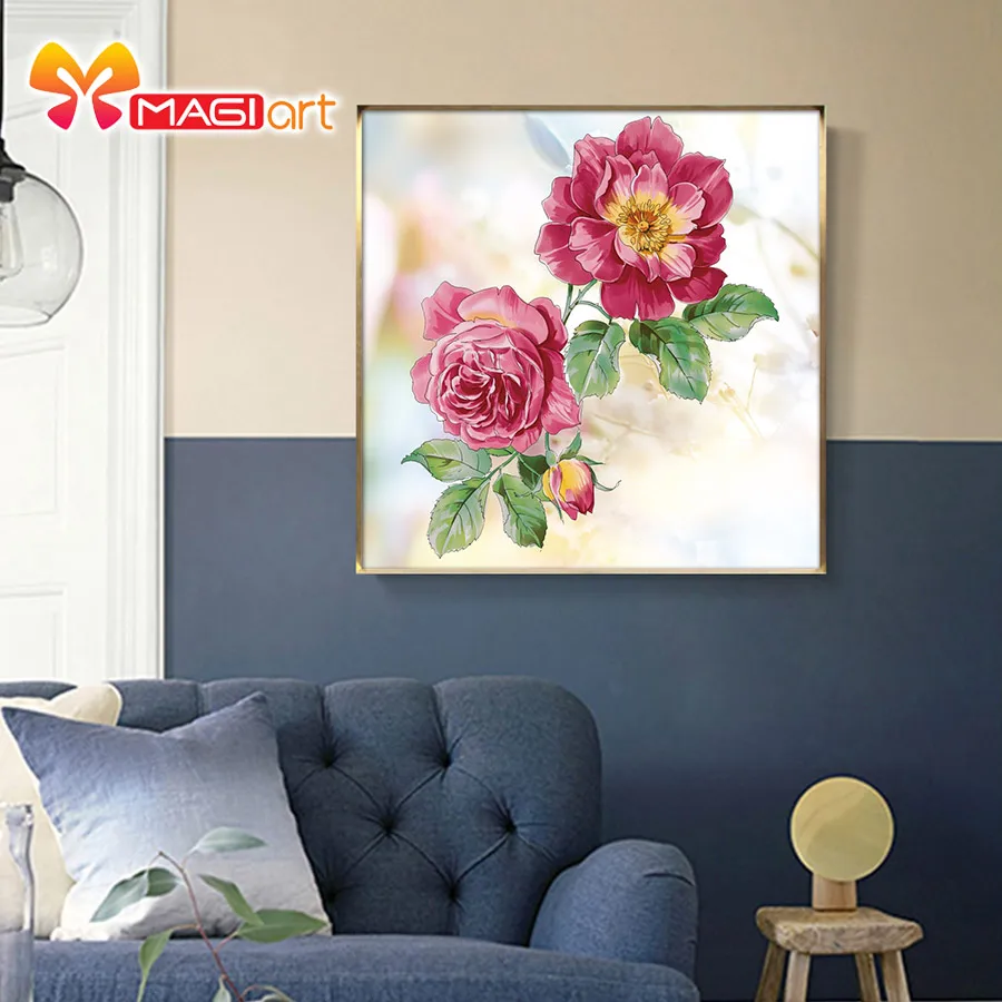 Наборы для вышивки крестиком, наборы для рукоделия 11CT, водорастворимые холщовые узоры 14CT, цветочный стиль, два roses-NCMF194