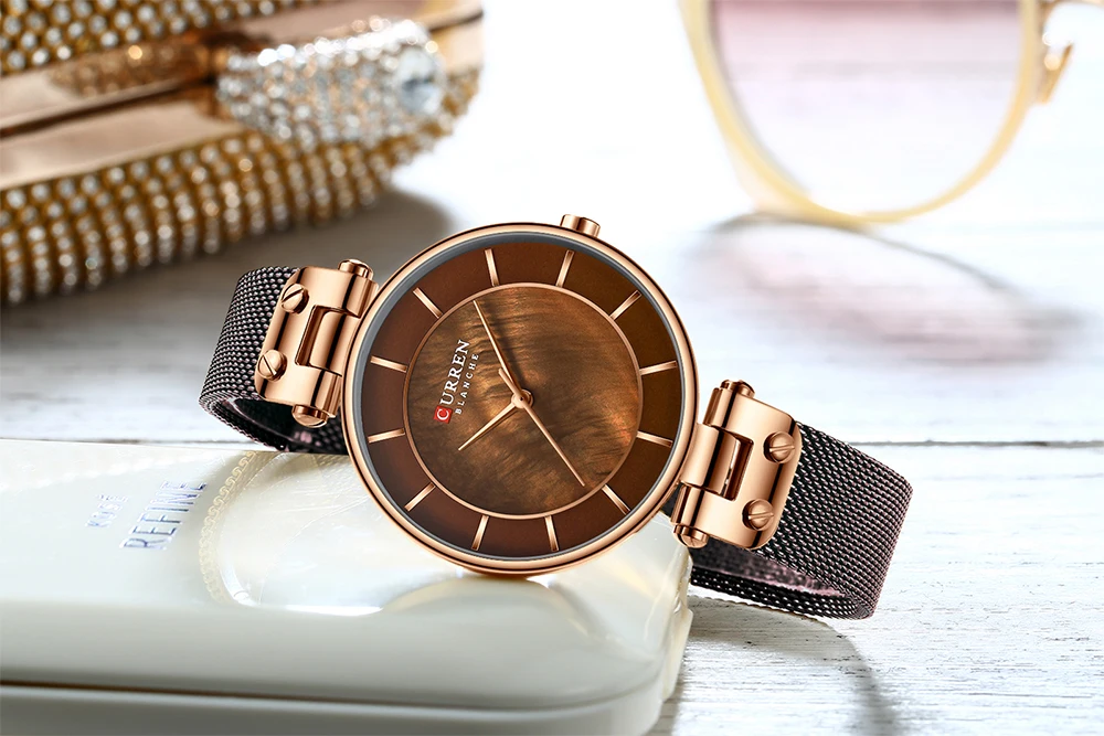 Часы CURREN женские кварцевые, роскошные брендовые водонепроницаемые с кожаным ремешком, 2019