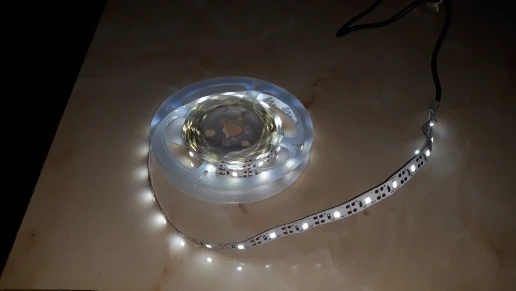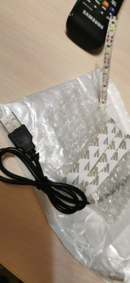 Посылка до Павлодара шла около месяца. Упакована средненько в пупырь пакет. Сделано хорошо. Вероятно спаяна из двух полос по 30 диодов. Светит очень приятным тёплым светом. Ток потребления около 700 мА. Товаром даволен, но хотелось бы чтобы в комплект продавец ложил угловые под 90° повороты, как дополнительную опцию по желанию покупателя. Крепить на подсветку телека или монитора не очень удобно. Рекомендовать можно. Как долго проработает покажет время