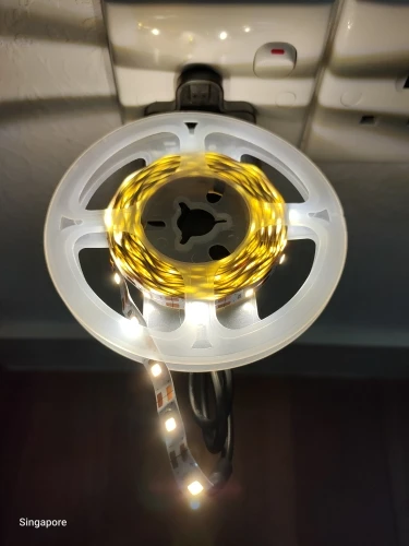 Приехала быстро. Упакованно средненько, но ничего не сломалось и хорошо. Для работы пульта нужна батарейка cr 2025. Без настройки просто быстро меняет цвета на красный, зелёный, синий, давольно яркая и хорошо видно даже с комнатным освещением. Когда отклеивал ленту для поклейки, случайно и слез кусок клея, будьте осторожны )