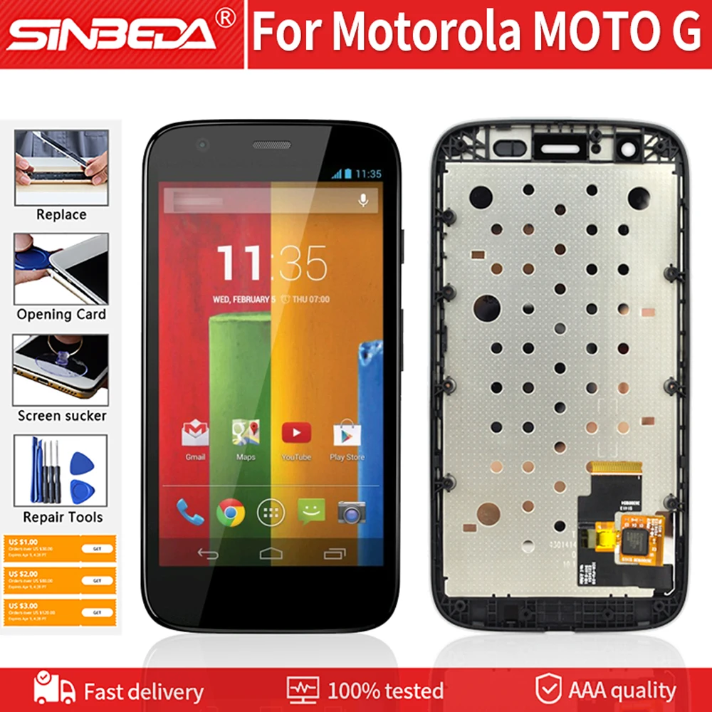 ЖК-дисплей для Motorola MOTO G XT1031 XT1032 XT1033 XT1036, сенсорный экран с дигитайзером и рамкой для Moto G, дисплей XT1031, оригинал