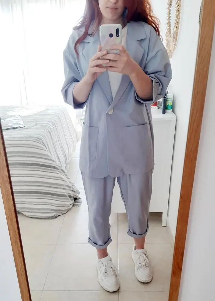 Это довольно красиво, и это так же, как на фотографиях, как в форме и цвете. Конечно, модель выглядит намного лучше, чем я. Я измерил 155 см примерно и был самым маленьким размером, американский размер немного велик для меня (хотя это не драматично, к сожалению), брюки очень правильные, и они также выглядят очень хорошо отдельно. Я увидел некоторые свободные нитки или плохо обработанные швы, но это, безусловно, не кутюр, поэтому я знаю, что это может произойти, и в моем случае это не было ничего тяжелого. Вот почему я так доволен покупкой!