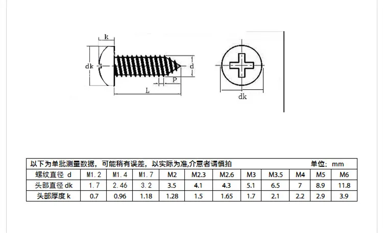 Самонарезающий винт из нержавеющей стали 304 с круглой головкой, конические концевые Винты M3M4M5M6