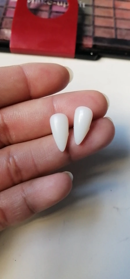 Идеально! Мои проблемы были только в том, что я забывал заказать клей, поэтому мне пришлось использовать клей для протеза, чтобы держать их на месте. Но сами fangs хорошее качество и прибыл быстро