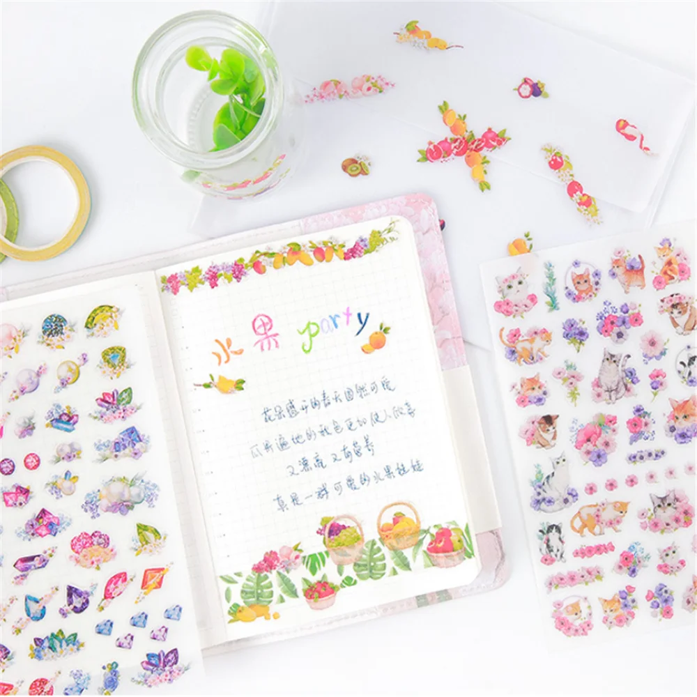 6 листов мультфильм цветы Кошка наклейки для скрапбукинга Сделай Сам блокнот дневник фото декоративные наклейки Kawaii Канцтовары милые наклейки