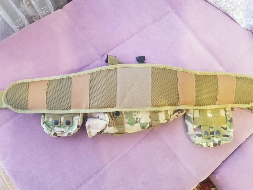 Хороший пояс, сшито ровно. Радует что фастекс в цвет пояса, на сумке жаль черные фастексы. Подсумок под рацию и сухарку повесил на разгруз. На пояс сбросник и сумку под гранаты. Подгонянтся под любой размер. Но при носки ослабевает. Думаю в дальнейшем настроить и прихватить нитками.