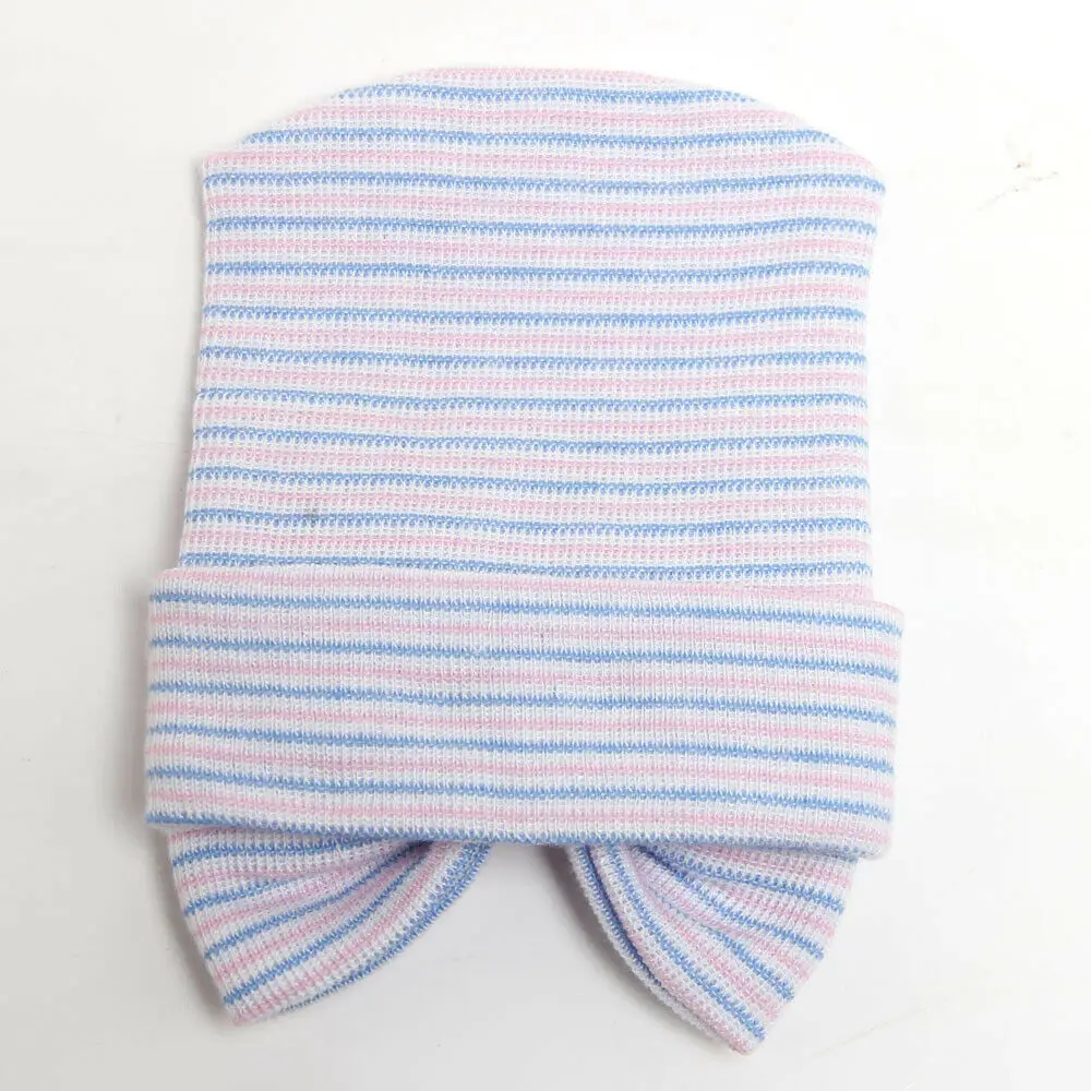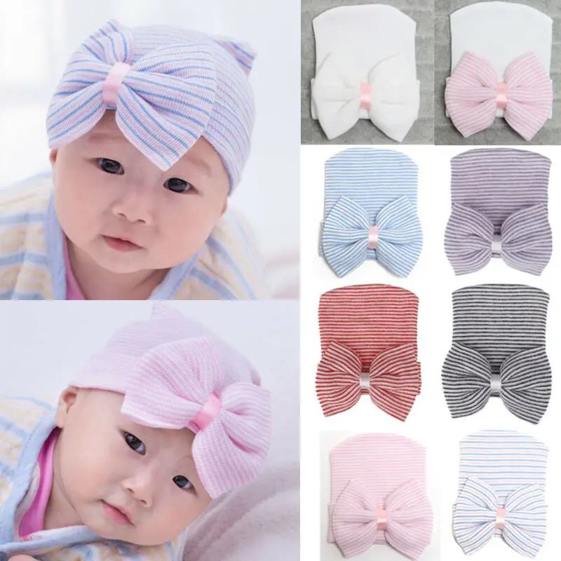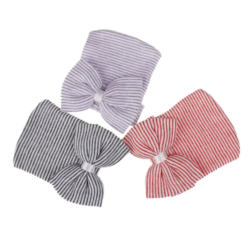 Шапка-бини унисекс в полоску, с бантом, для новорожденных