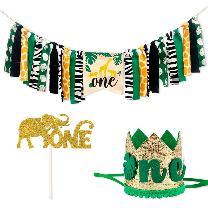 Первый день рождения украшения для детей первый день рождения воздушные шары баннер шляпы джунгли принадлежности для тематической вечеринки сафари животные вечерние украшения
