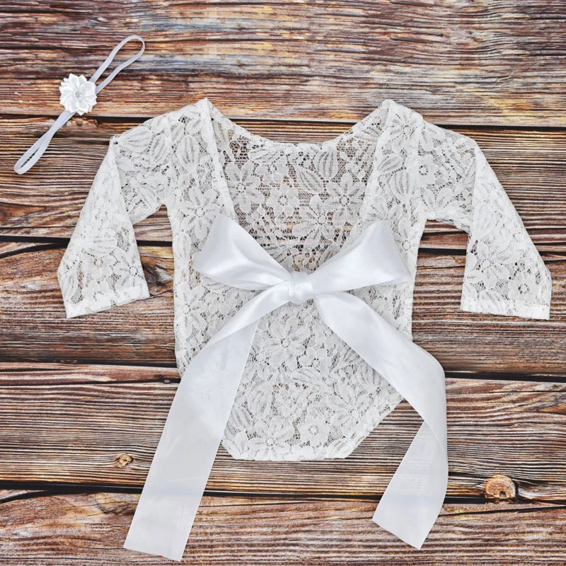 Кружевное боди Pudcoco с бантом для новорожденных девочек, повязка на голову с цветами, реквизит для фотосъемки, одежда для маленьких девочек