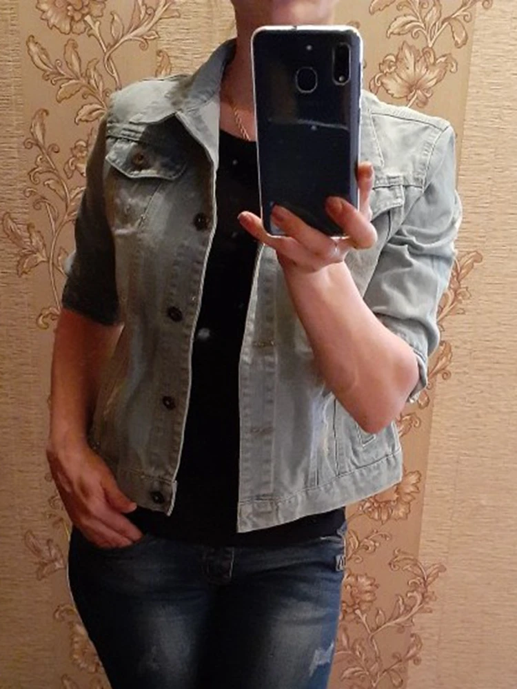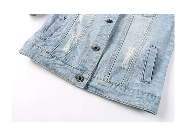 Куртка женская джинсовая с рукавом 34, куртка из денима 2021, Женская рваная джинсовая куртка, Женское пальто, куртка из денима