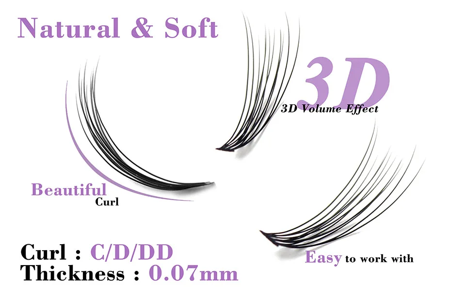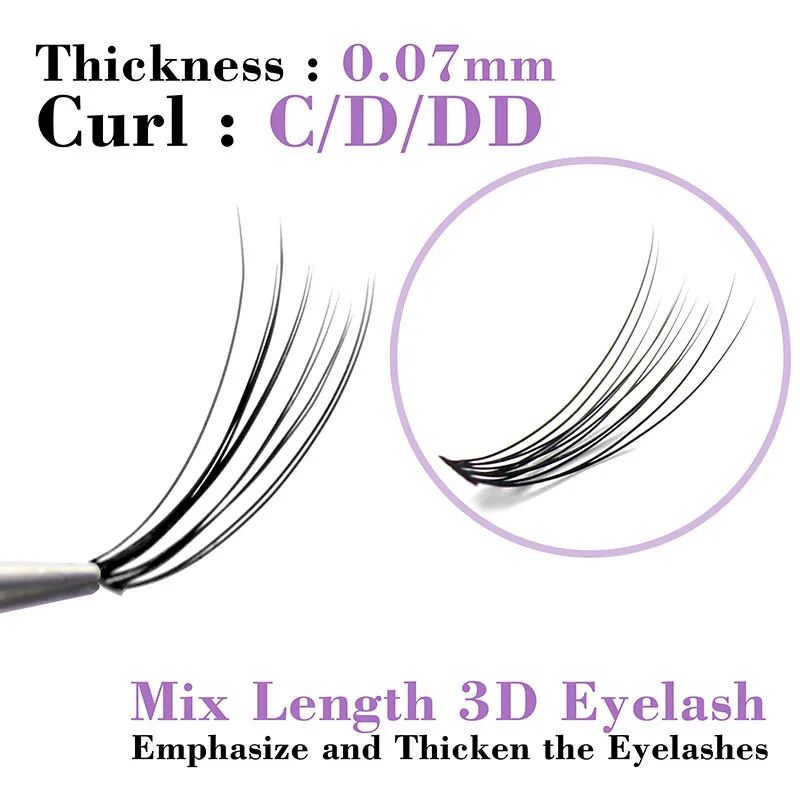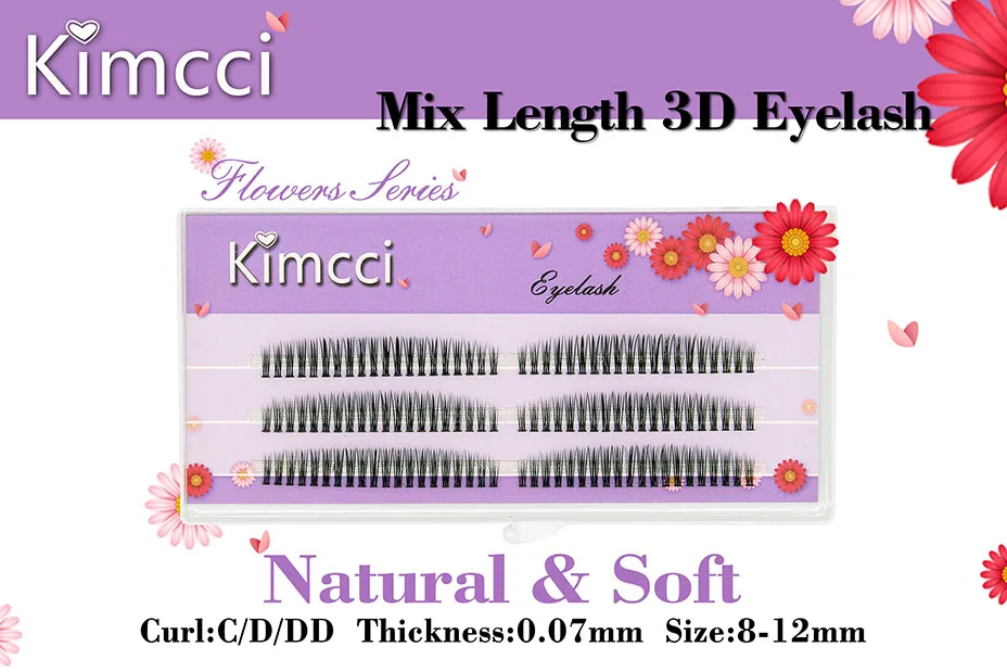 Ресницы Накладные Kimcci CDDD 8-12 Mix 3D для наращивания, натуральный русский объем, искусственные ресницы для макияжа