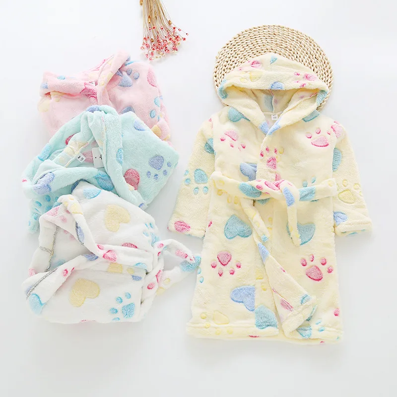 Фланелевый детский зимний банный халат, милый мультяшный стиль, теплая одежда для сна для маленьких мальчиков и девочек, халат, детские пижамы для девочек, От 2 до 8 лет
