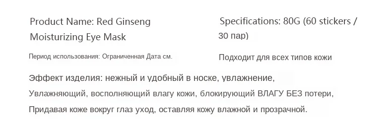Коллагеновые патчи для глаз, с женьшенем, 60 шт., увлажняющие, гидрогелевые, омолаживающие, гелевые патчи для глаз, для удаления темных кругов Q