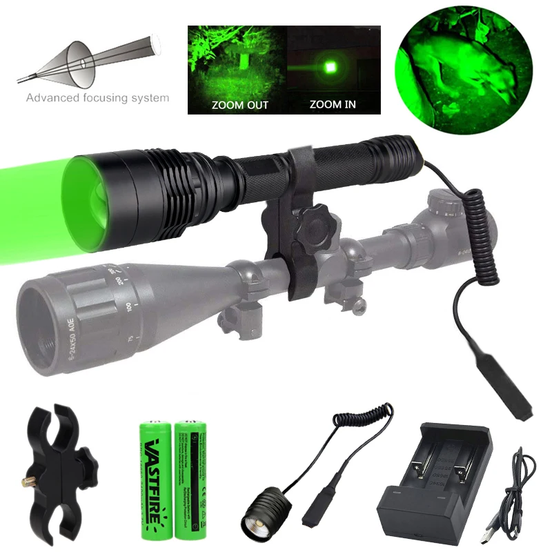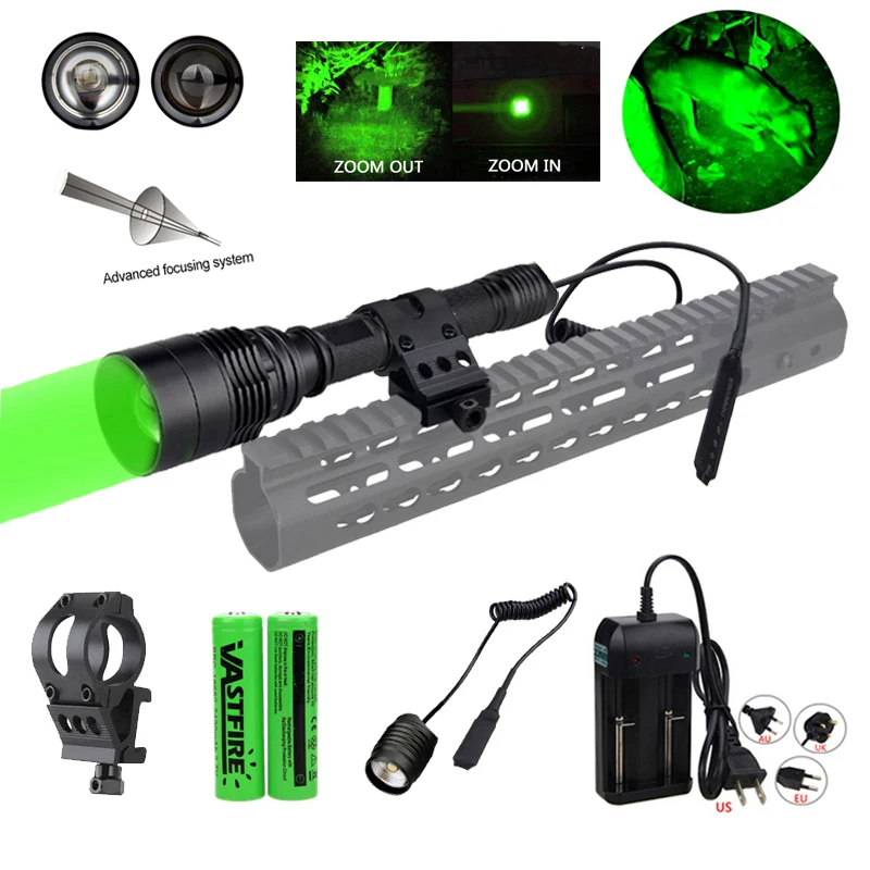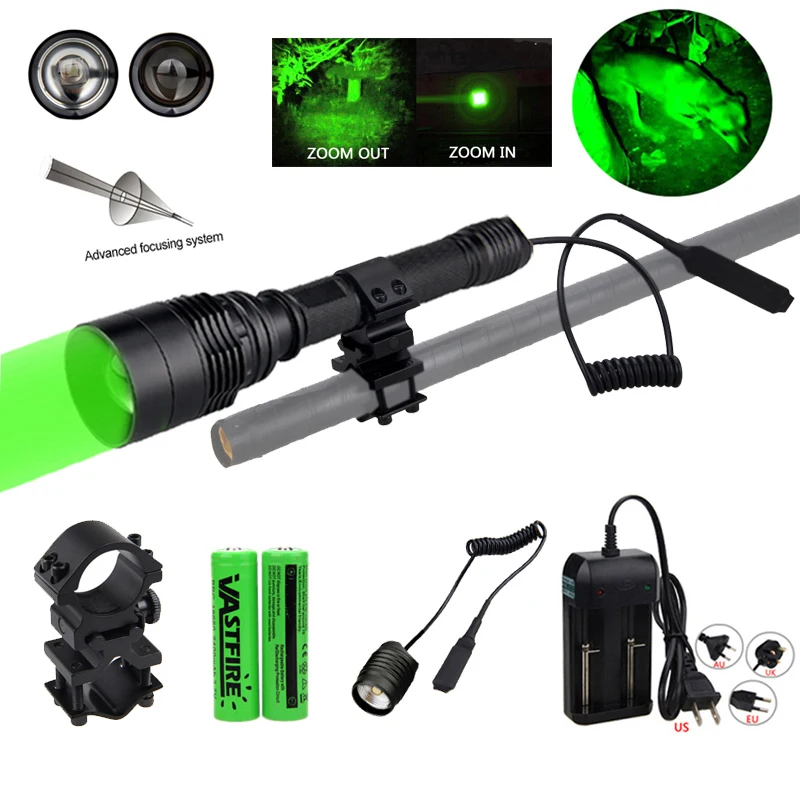 T6 10000 люмен зеленый светодиодный фонарик Съемный Перезаряжаемый фонарь Регулируемая длина тактический фонарь фонарик для охоты