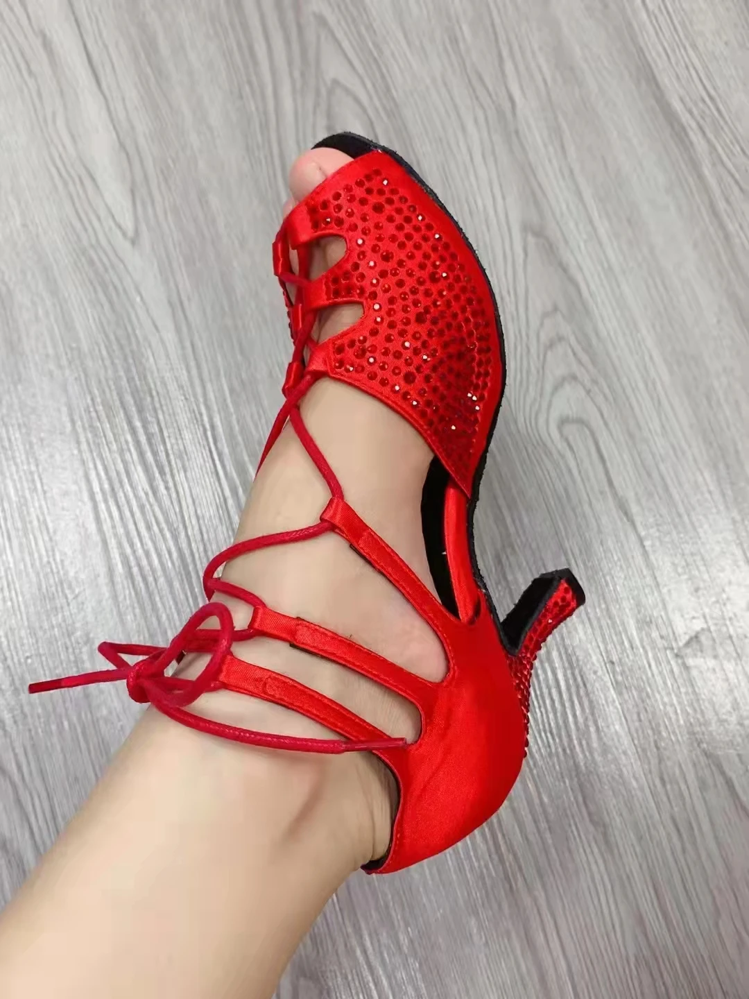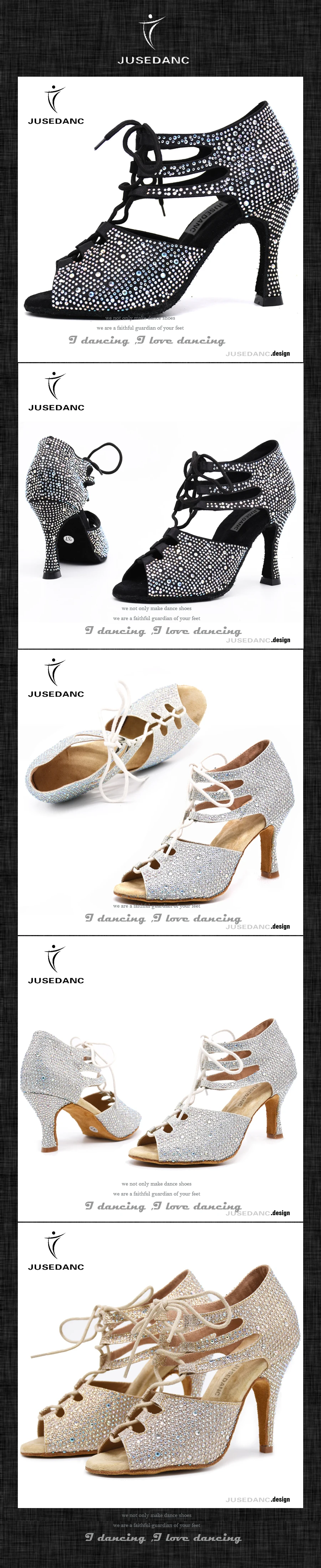 Танцевальные туфли женские туфли для латиноамериканских танцев туфли для бальных танцев на низком каблуке для девушек обувь для джаза женские блестящие стразы JuseDanc